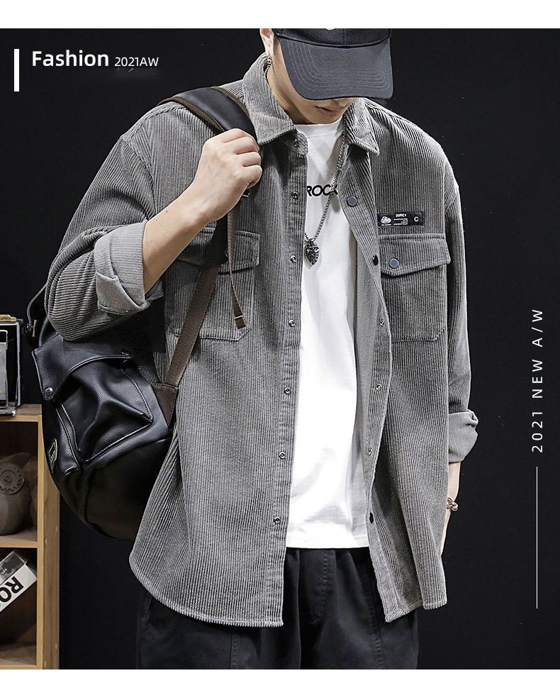 코듀로이 셔츠 남성 봄, 가을 루즈 플러스 지방 홍콩 스타일 캐주얼 긴팔 셔츠 드롭 배송 작업복