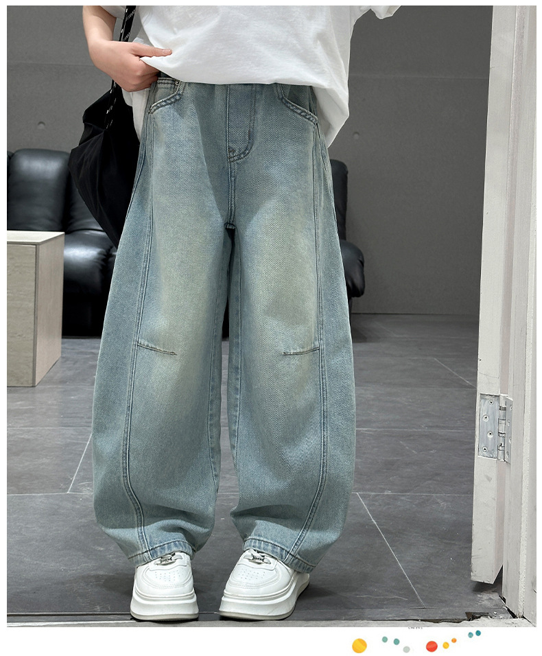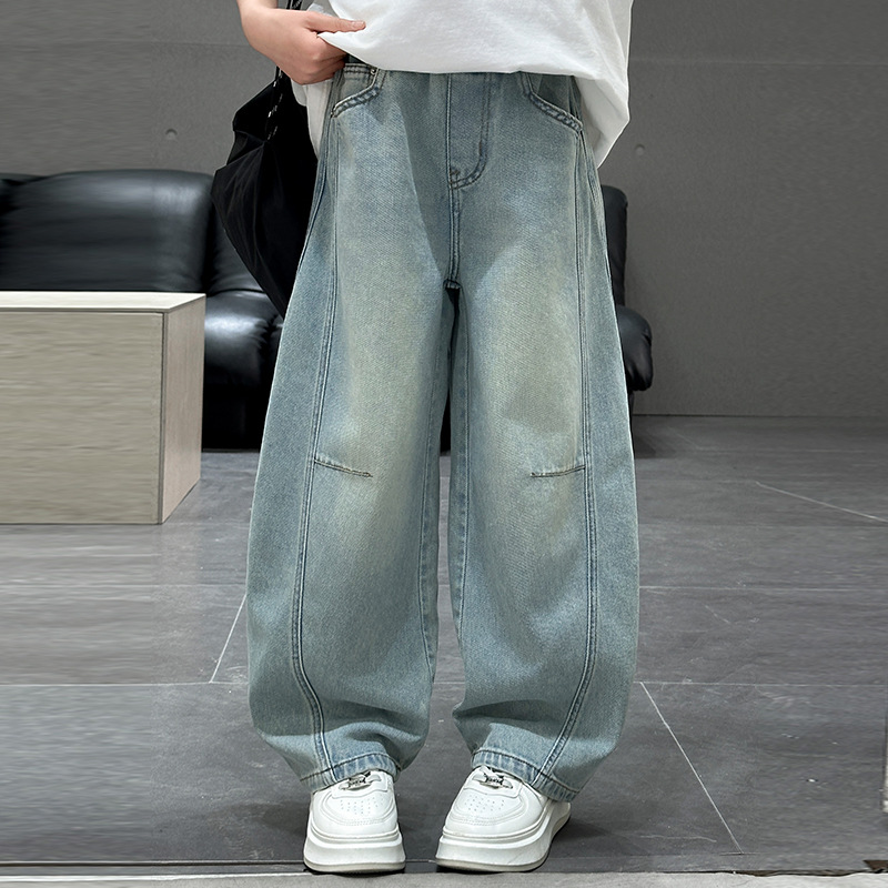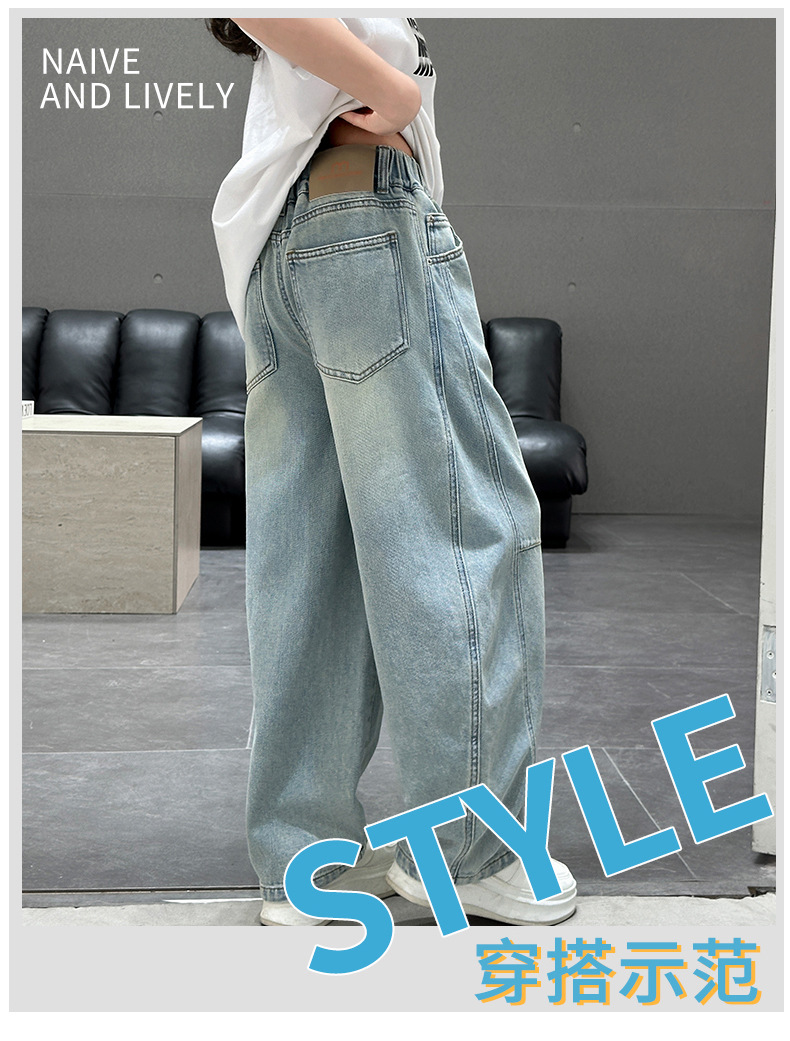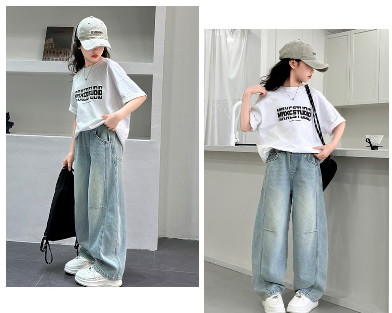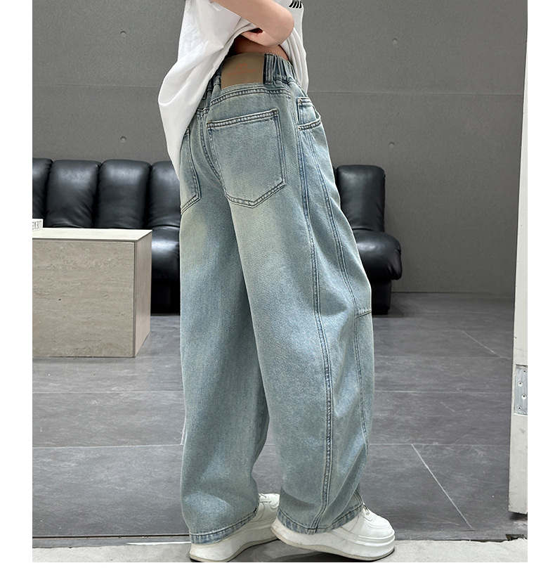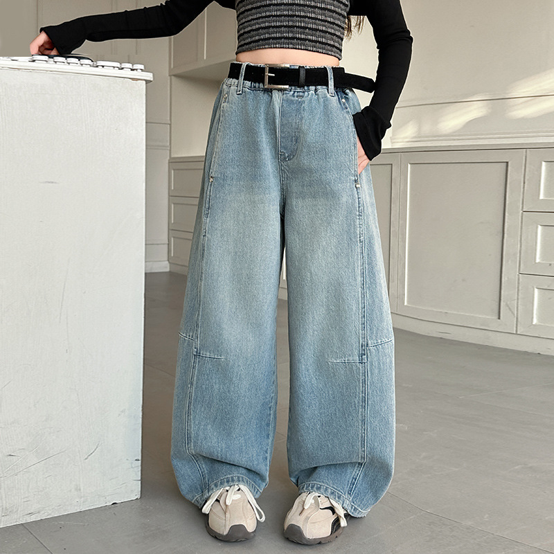 소녀 청바지 봄 2025 새로운 아동복 어린이 봄 긴 바지 봄과 가을 큰 소년 소녀의 넓은 다리 바지스토어 가기