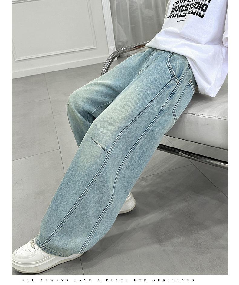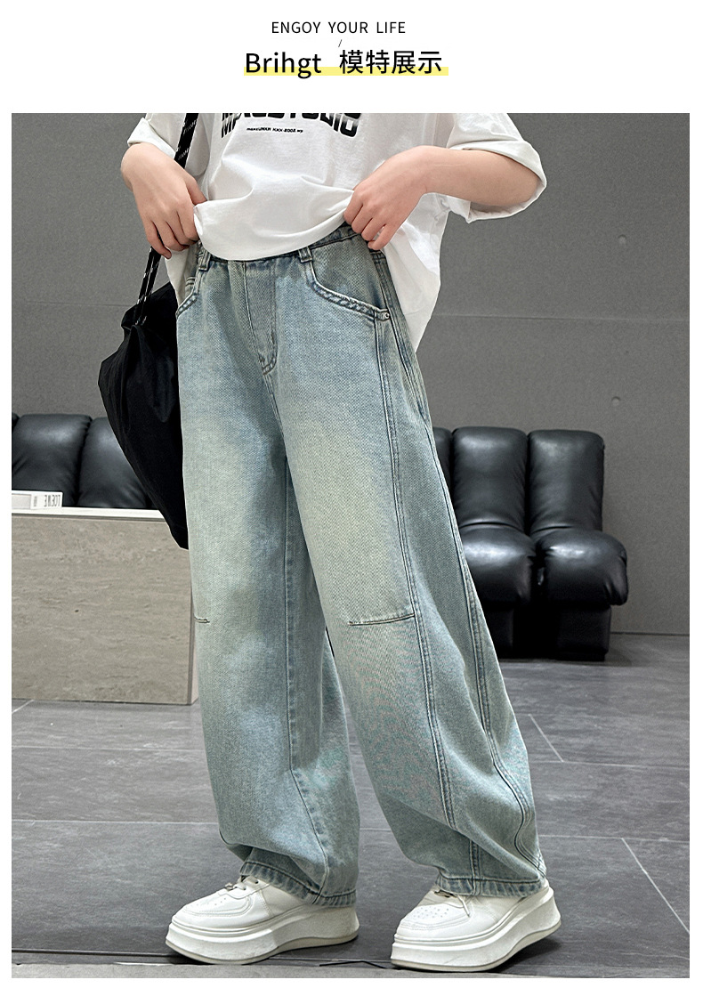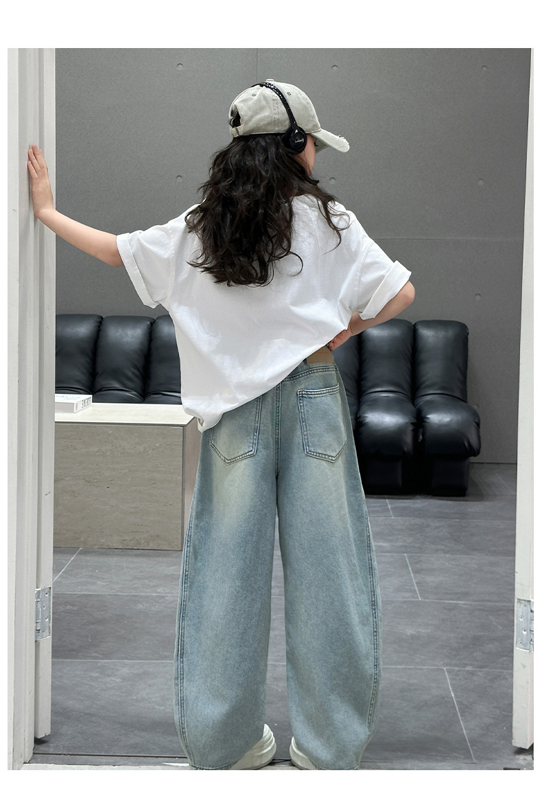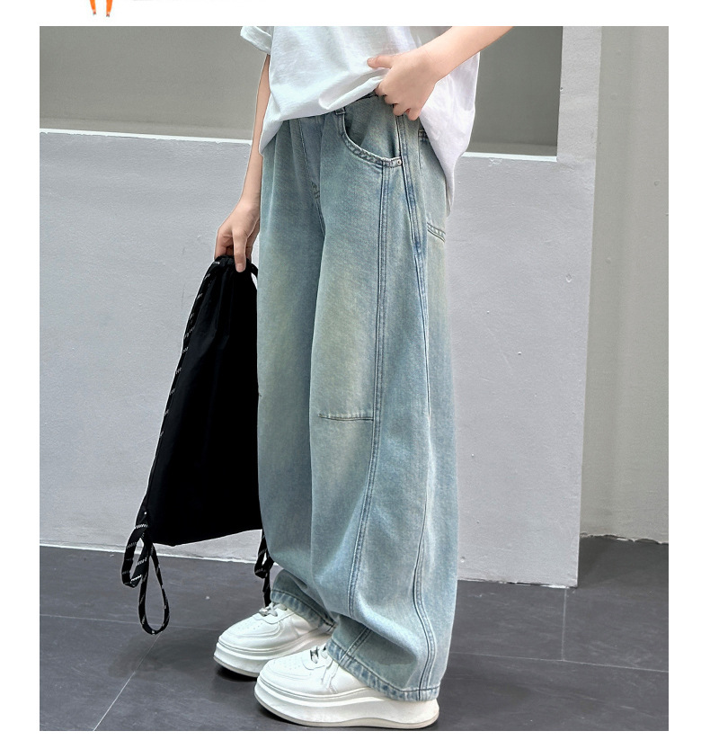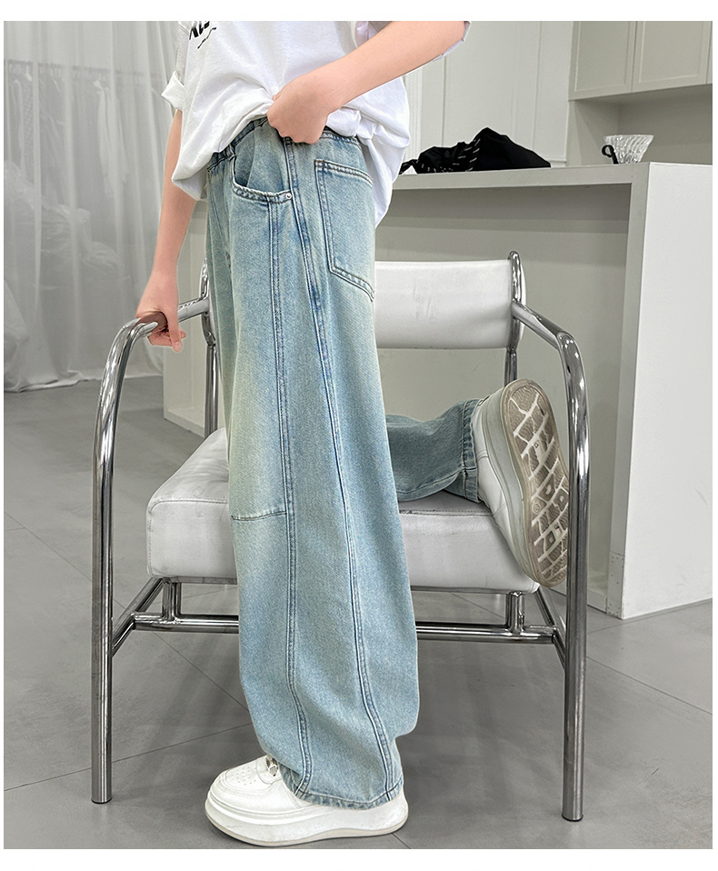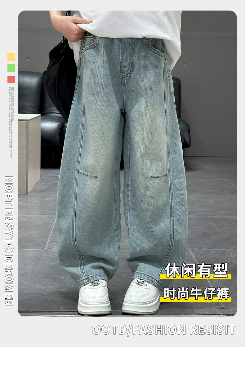 소녀 청바지 봄 2025 새로운 아동복 어린이 봄 긴 바지 봄과 가을 큰 소년 소녀의 넓은 다리 바지스토어 가기
