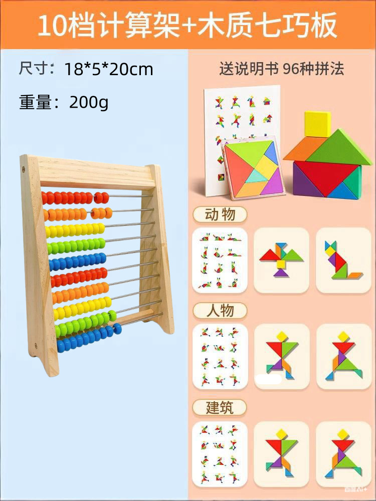 • 10단 원목 컴퓨팅 스탠드 + 숫자 카드 + 수식 시트 + 칠교놀이 세트(스티커 없음)