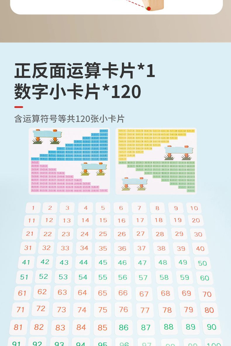 • 10단 원목 계산대 + 숫자카드 + 공식표 + 100개 계수봉 세트(스티커 없음)