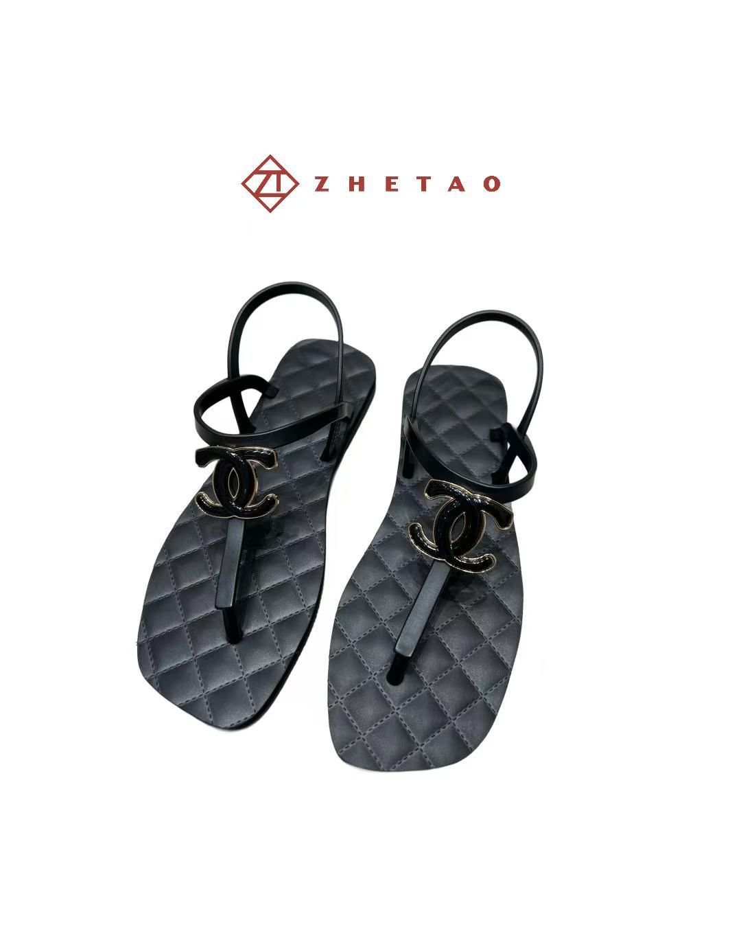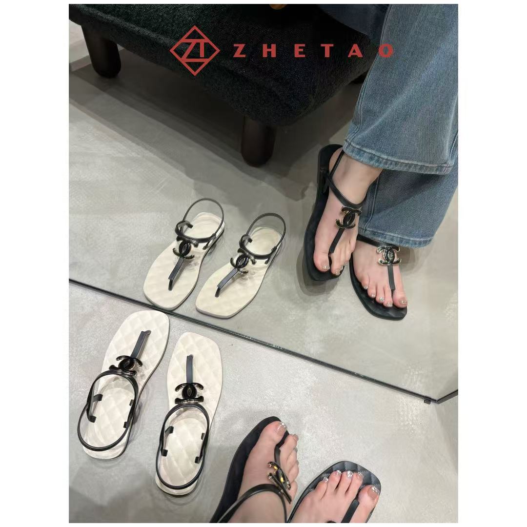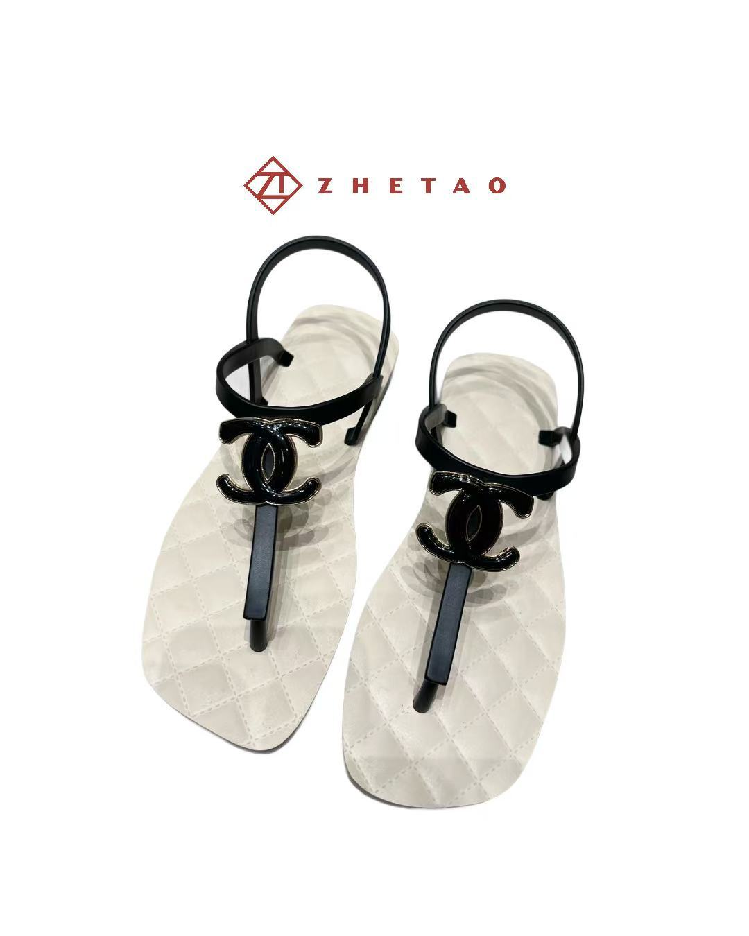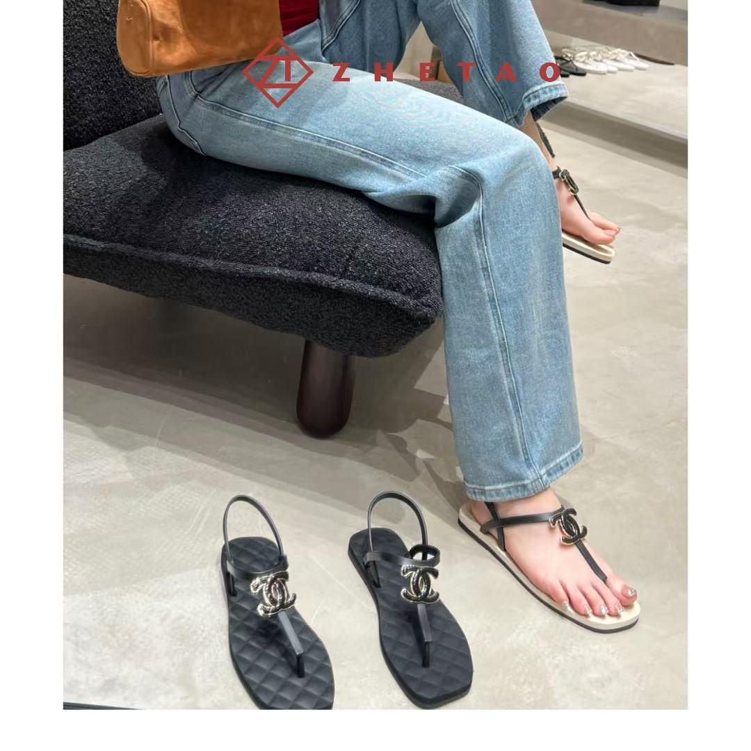 샤넬 스타일 클립 발가락 달콤한 샌들 2025 봄과 여름 둥근 발가락 Rhomboid 버클 플랫 고무 미끄럼 방지 샌들스토어 가기