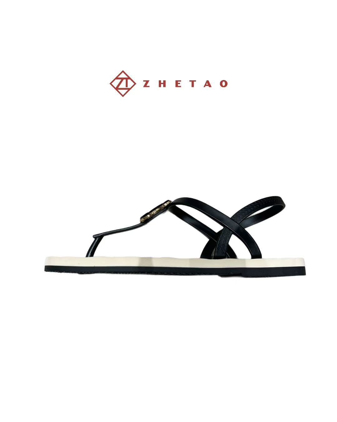 샤넬 스타일 클립 발가락 달콤한 샌들 2025 봄과 여름 둥근 발가락 Rhomboid 버클 플랫 고무 미끄럼 방지 샌들