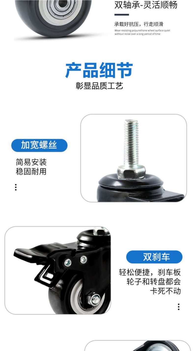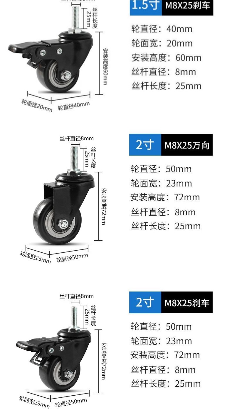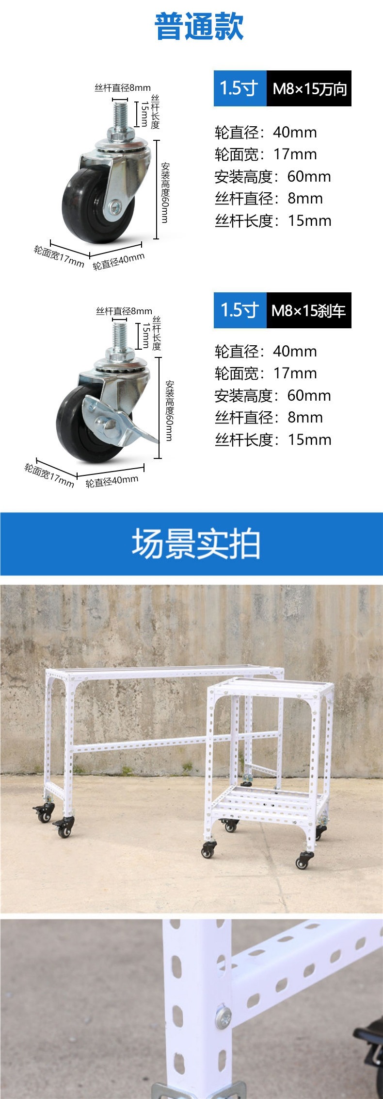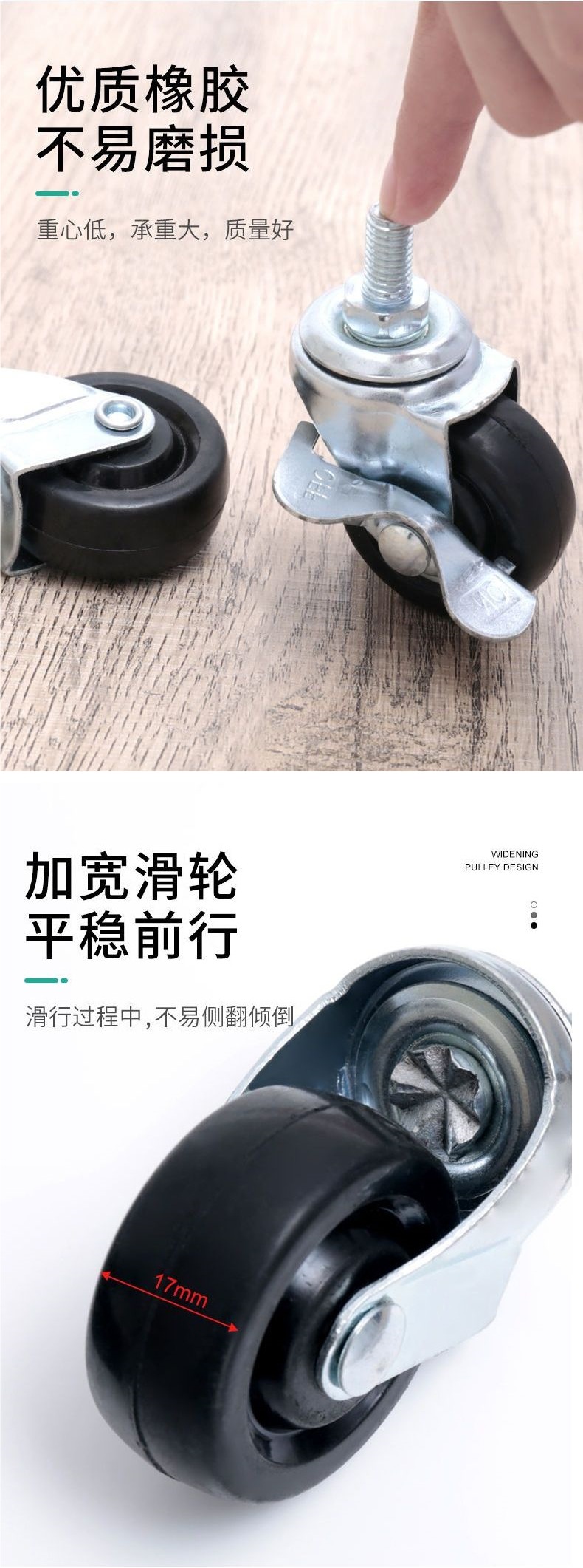 • 강철 베이스 + 1.5inch 고무 바퀴(2 브레이크 20k 방향)