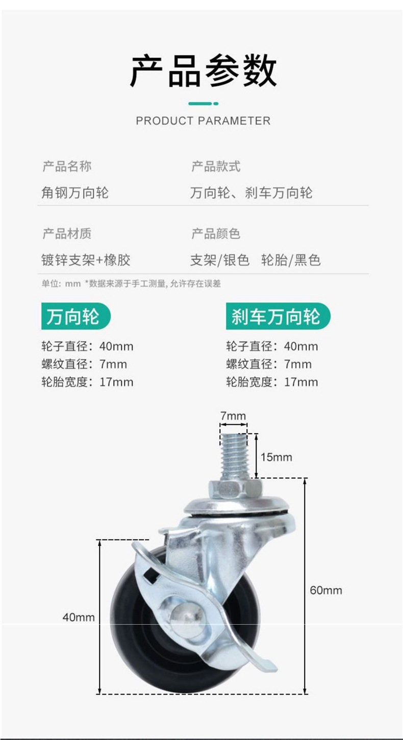 플라워 랙 휠 유니버설 휠 풀리 앵글 아이언 랙 앵글 스틸 고무 휠 탄소강 베이스 2 인치 1.5 인치 강화 휠스토어 가기
