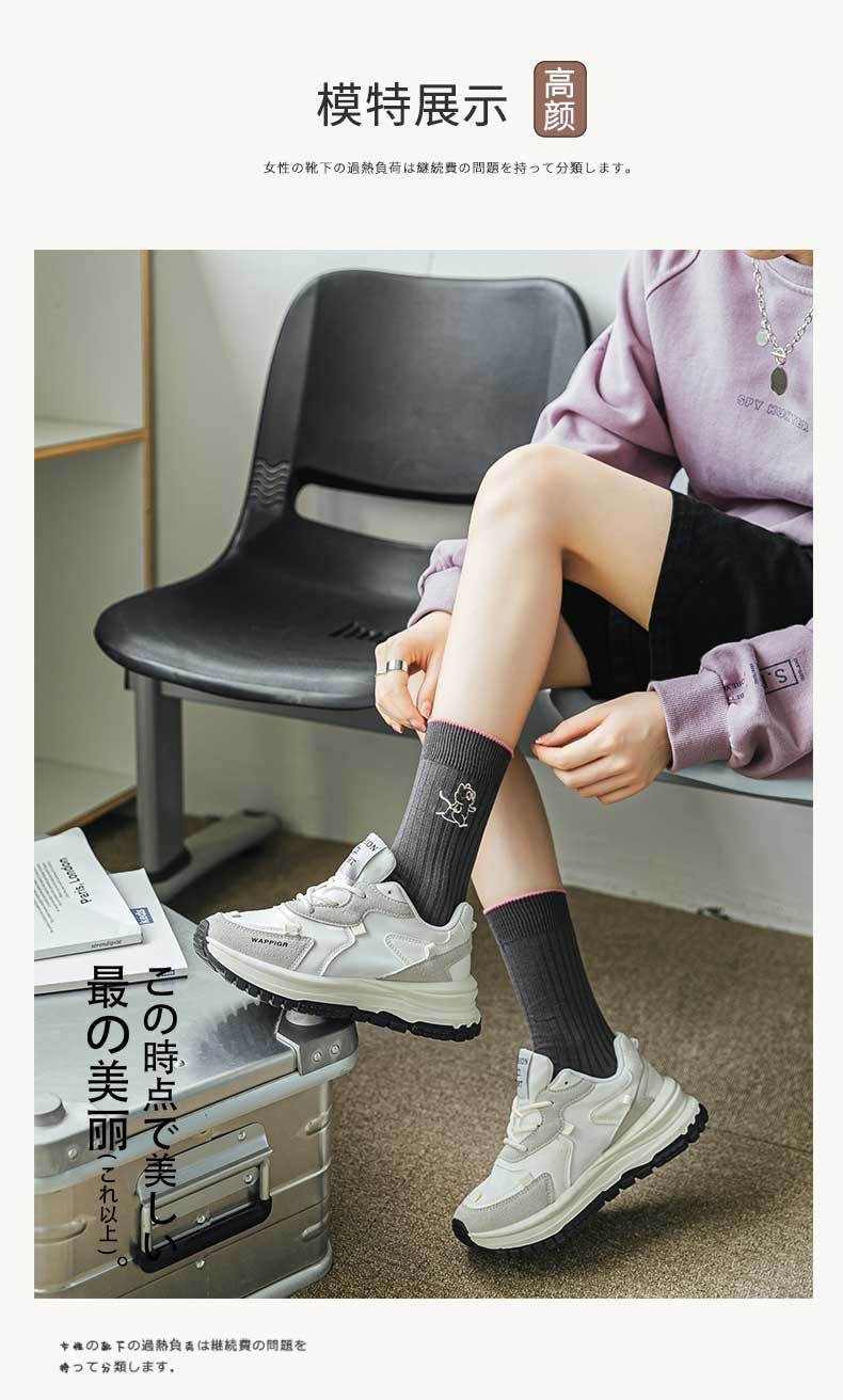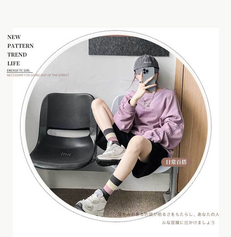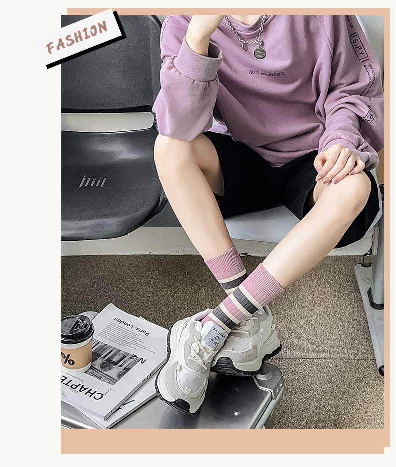 봄과 가을 줄무늬 양말 여성용 트렌디 한 순수 코튼 중간 길이 양말 일본식 올매치 스태킹 양말 한국식 자수 컬러 매칭 스타킹스토어 가기