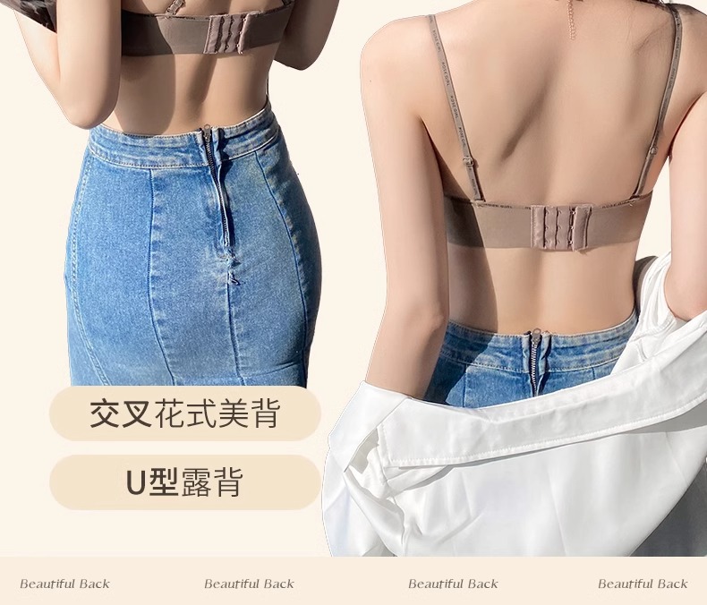 섹시한 크로스 아름다운 등 얇은 어깨 스트랩 비 마킹 속옷 작은 가슴 모임 U 자형 얇은 무테 처짐 방지 브래지어스토어 가기