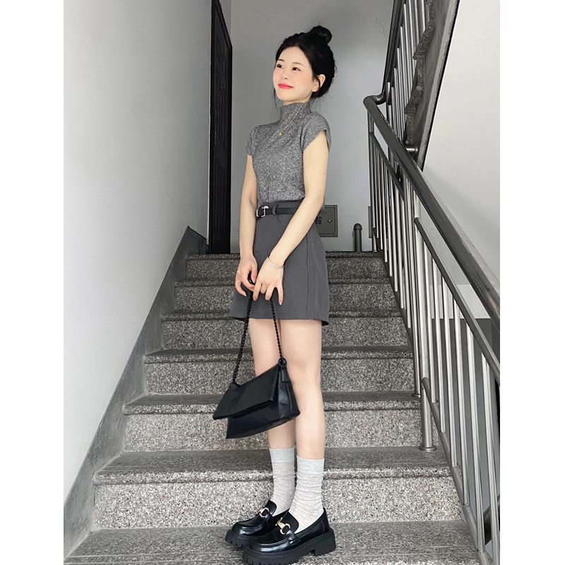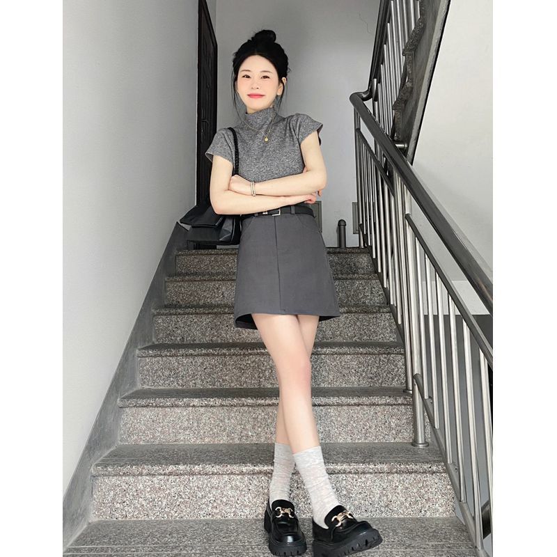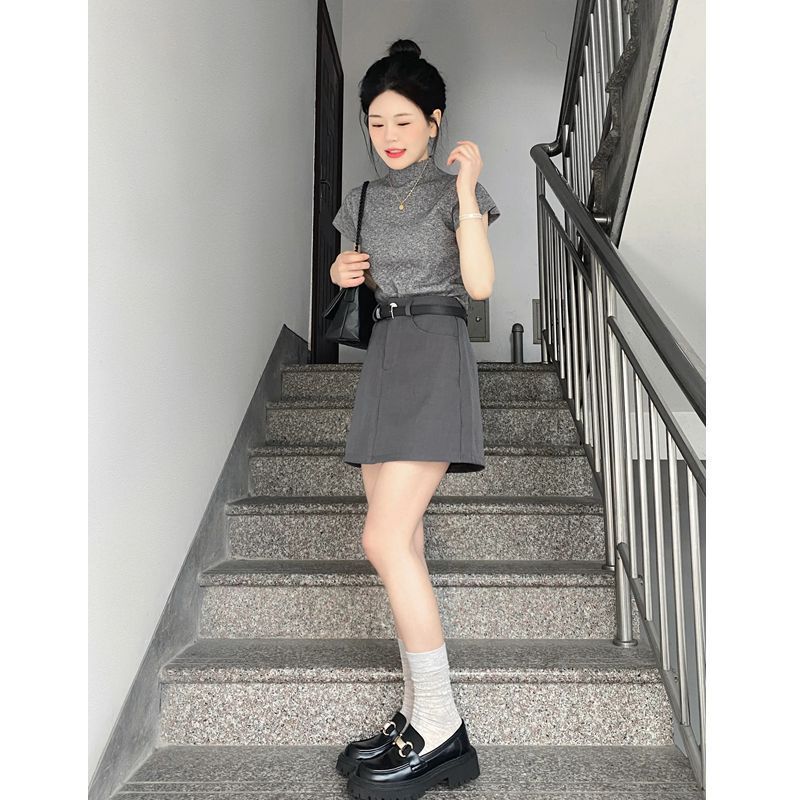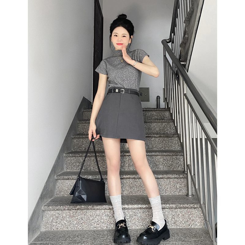 세트 여성 2025 년 여름 새로운 순수한 욕망 스타일 슬림 핏 하프 하이 칼라 니트 반팔 티셔츠 탑 하이 허리 스커트스토어 가기