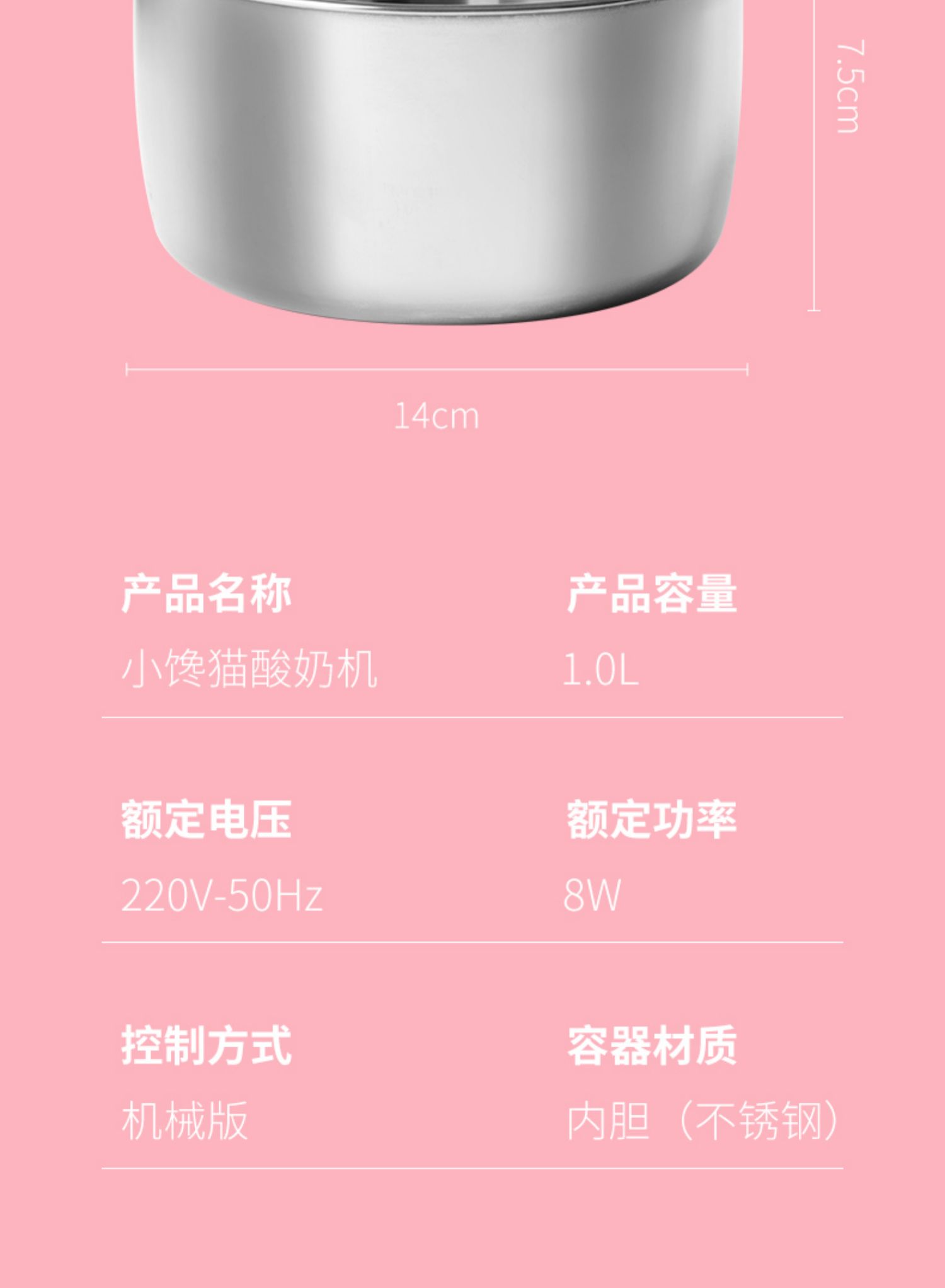 • 작은 욕심쟁이 고양이 요구르트 기계(1L 스테인레스 스틸 라이너)