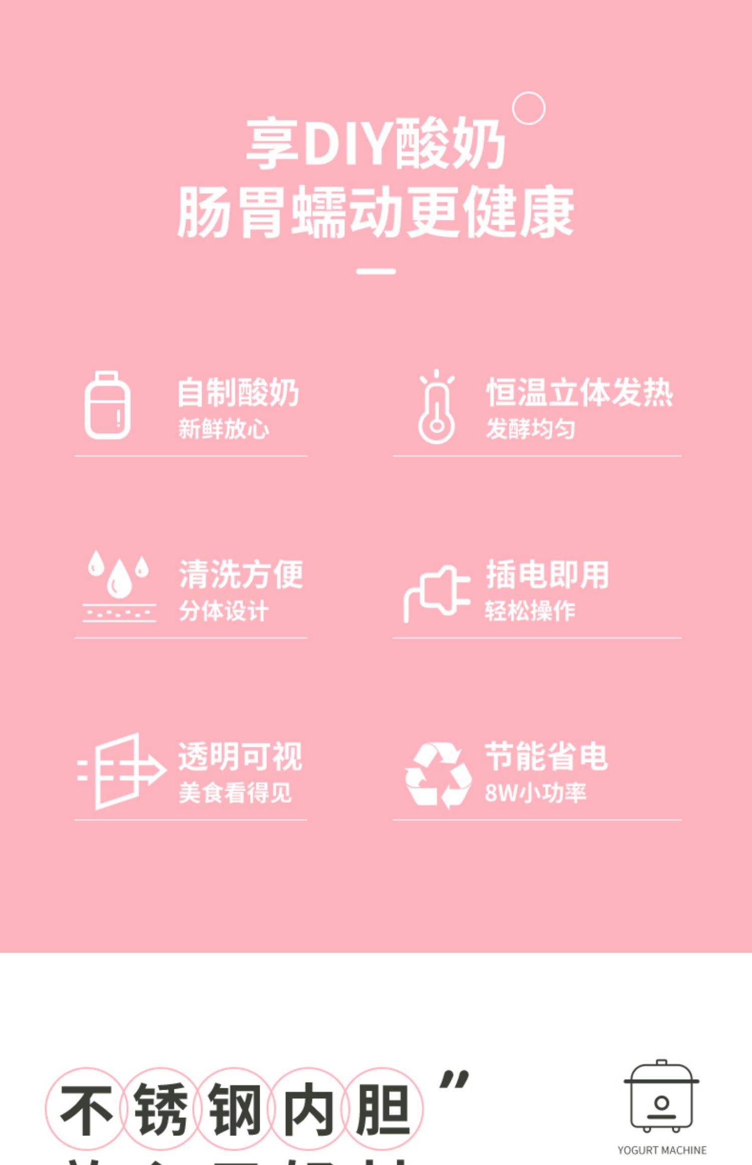 작은 Chanmao Sour 우유 기계 아티팩트 가정용 작은 자동 스테인레스 스틸 내부 냄비 달콤한 와인 쌀 와인 발효 박테리아 냄비스토어 가기