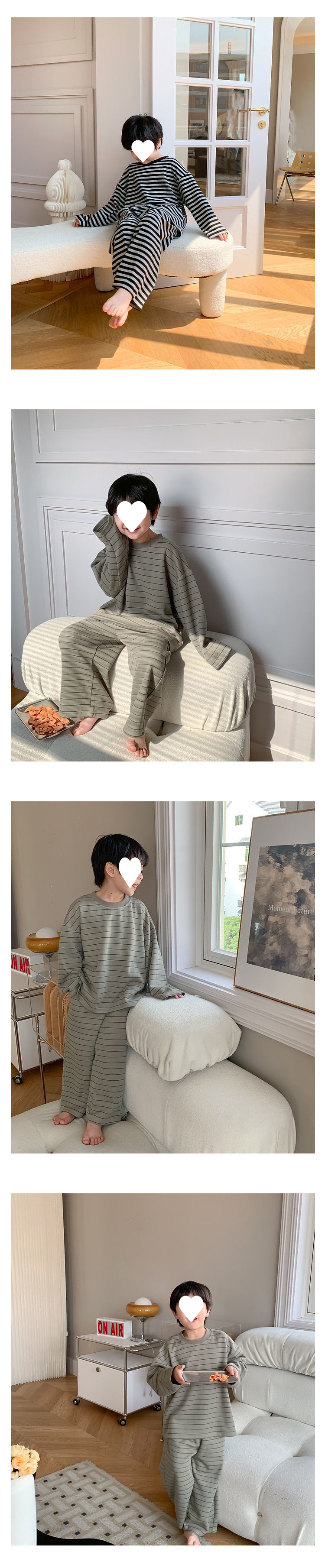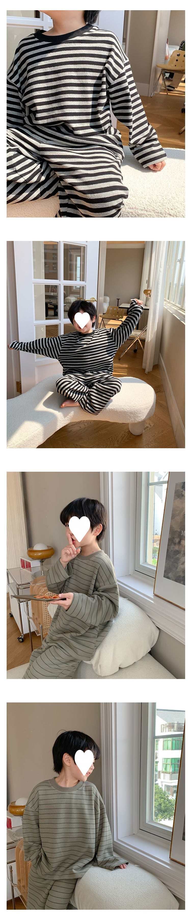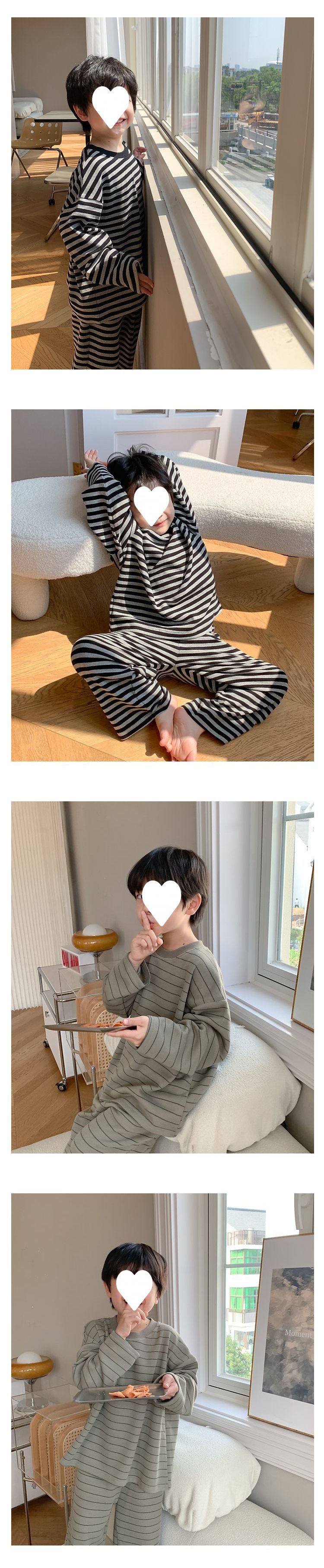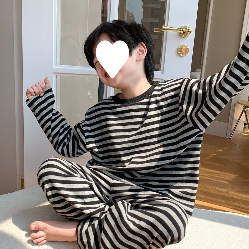 어린이 잠옷 소년 봄과 가을 패션 줄무늬 가을 옷 소년 아기 벨벳 따뜻한 세트 홈 옷스토어 가기