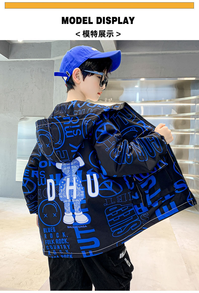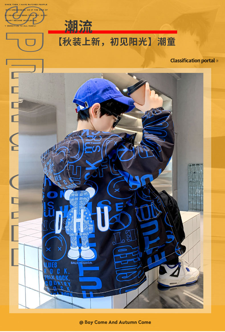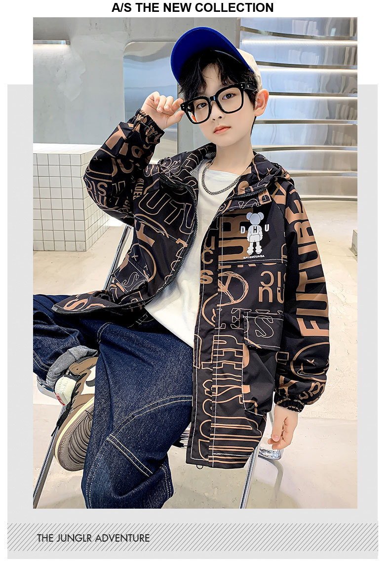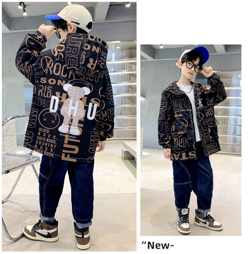 소년 가을 코트 2025 새로운 스타일 중대형 어린이 잘 생긴 소년 봄과 가을 어린이 편지 인쇄 후드 코트 트렌디스토어 가기