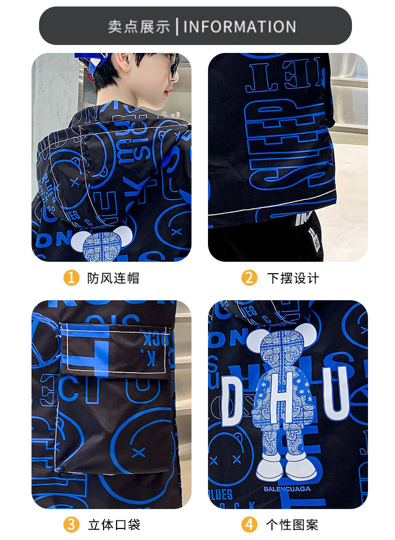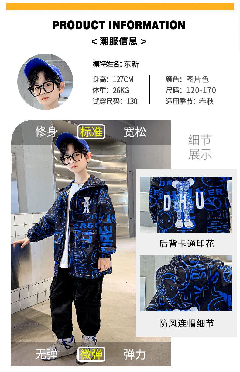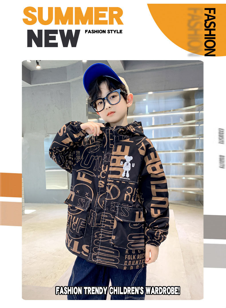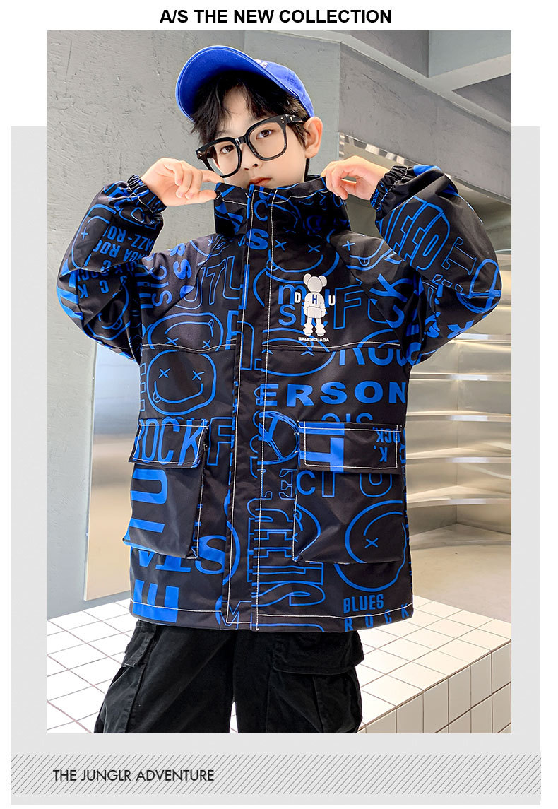 소년 가을 코트 2025 새로운 스타일 중대형 어린이 잘 생긴 소년 봄과 가을 어린이 편지 인쇄 후드 코트 트렌디스토어 가기