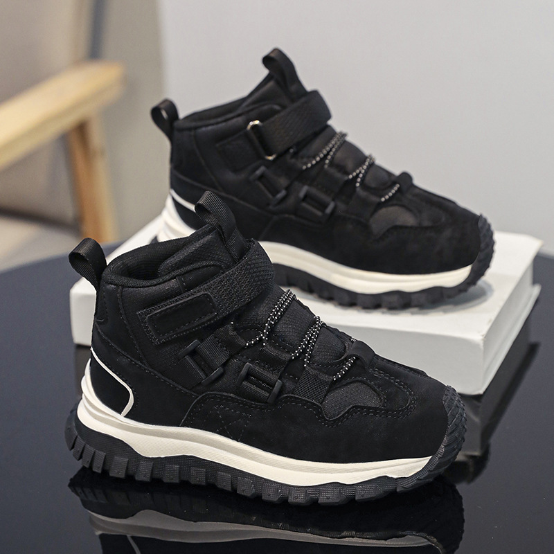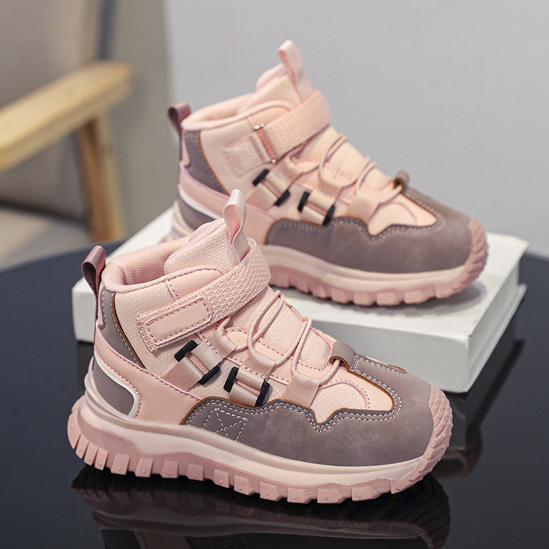 가을/겨울 2025 새로운 어린이 패션 방수 가죽 하이 탑 중대형 어린이 운동화 미끄럼 방지 어린이 등산 신발