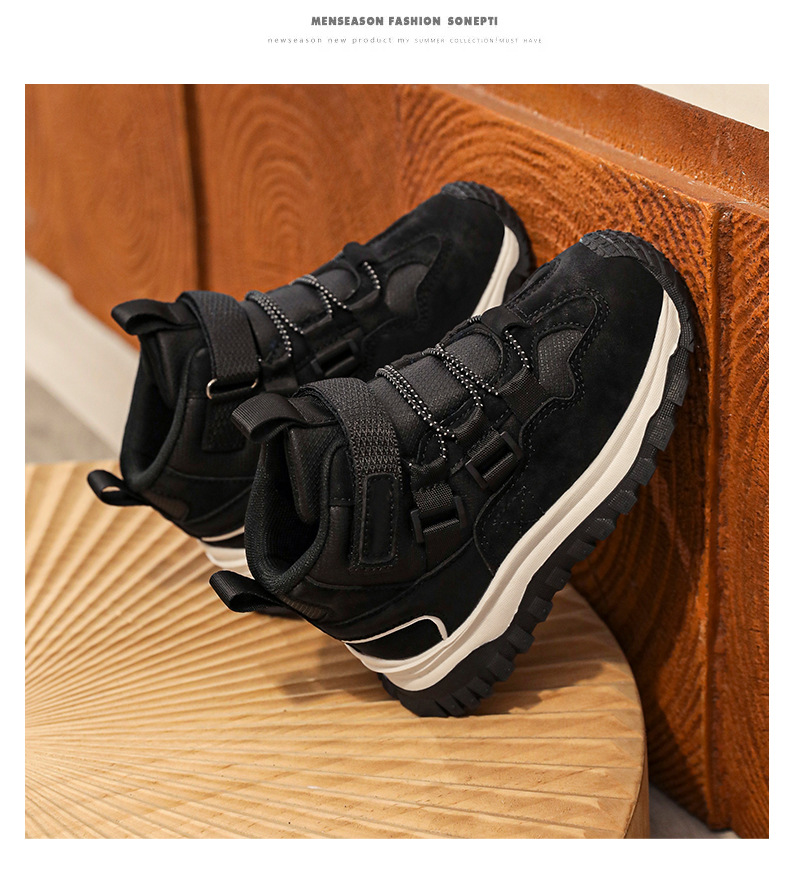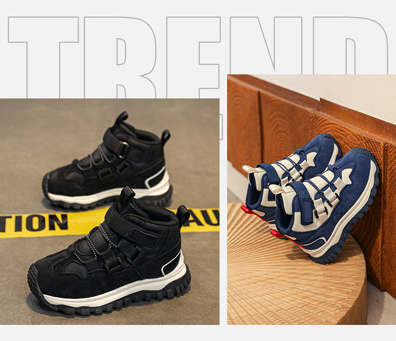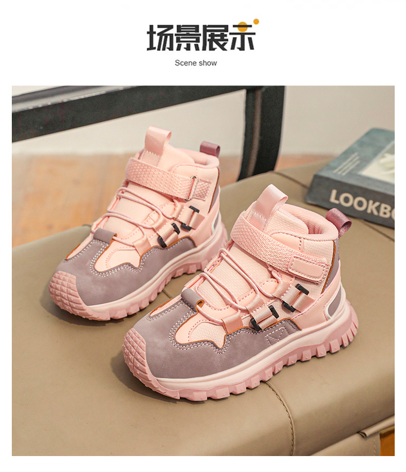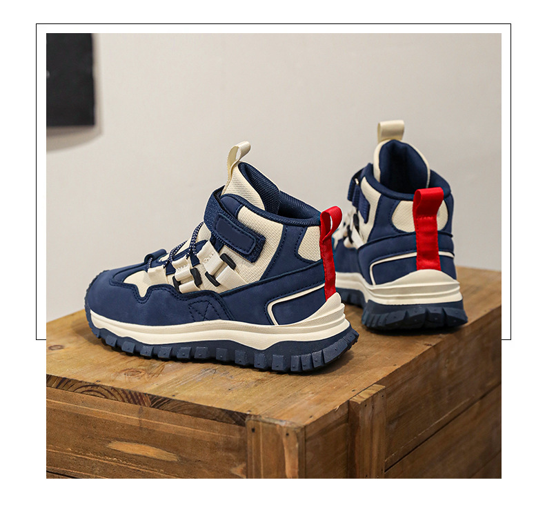 가을/겨울 2025 새로운 어린이 패션 방수 가죽 하이 탑 중대형 어린이 운동화 미끄럼 방지 어린이 등산 신발스토어 가기