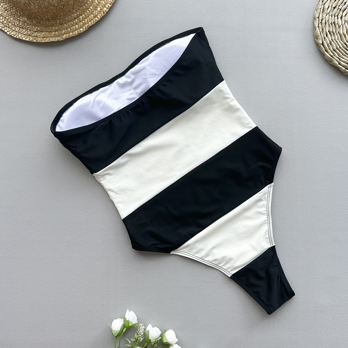 아마존 컬러 블록 스트라이프 원피스 수영복 유럽과 미국의 섹시한 핫 걸 가슴 랩 원피스 수영복 온천 수영복