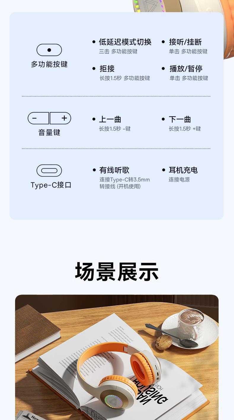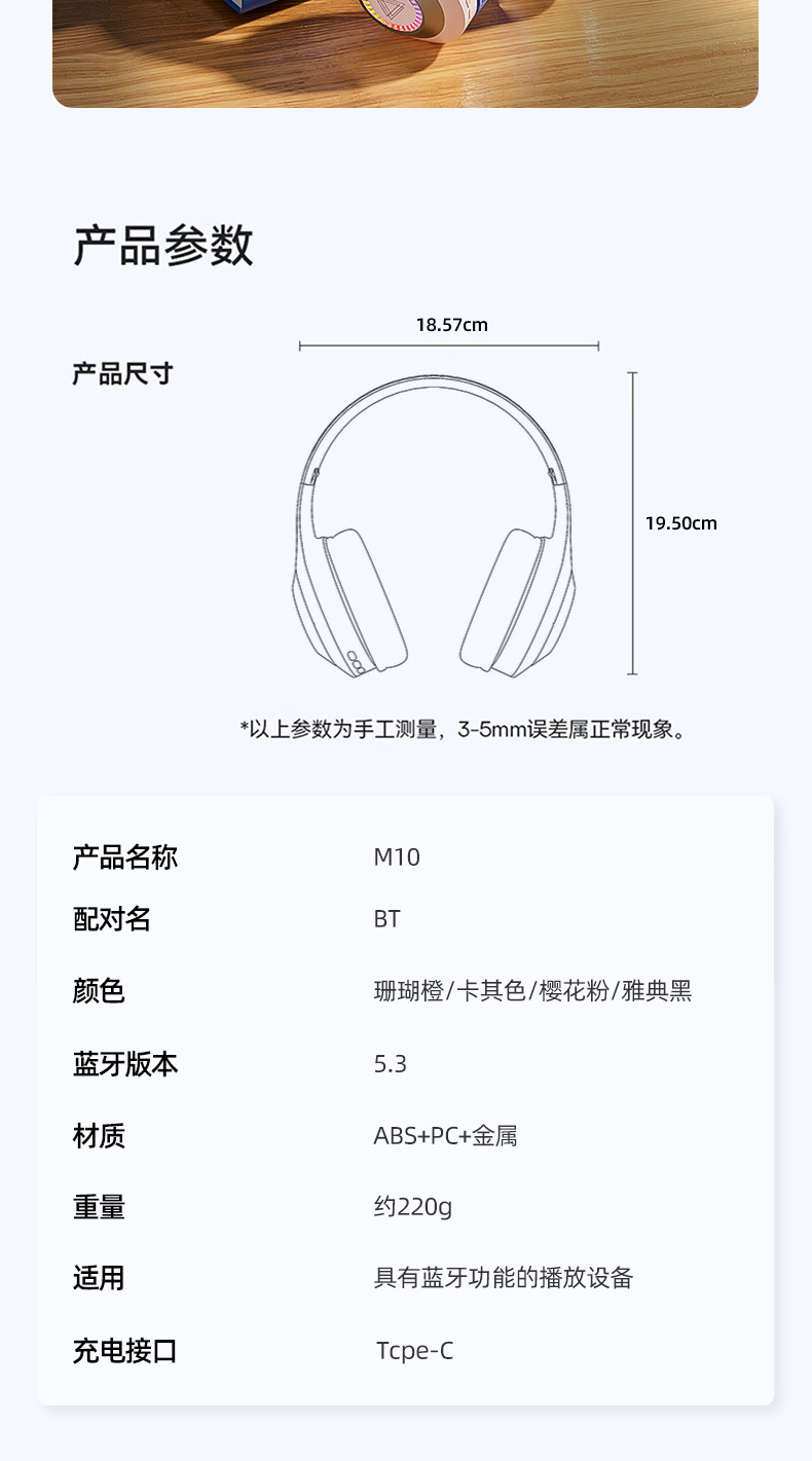 국경 새로운 LED 발광 헤드셋 블루투스 M10 스테레오 게임 무선 헤드셋