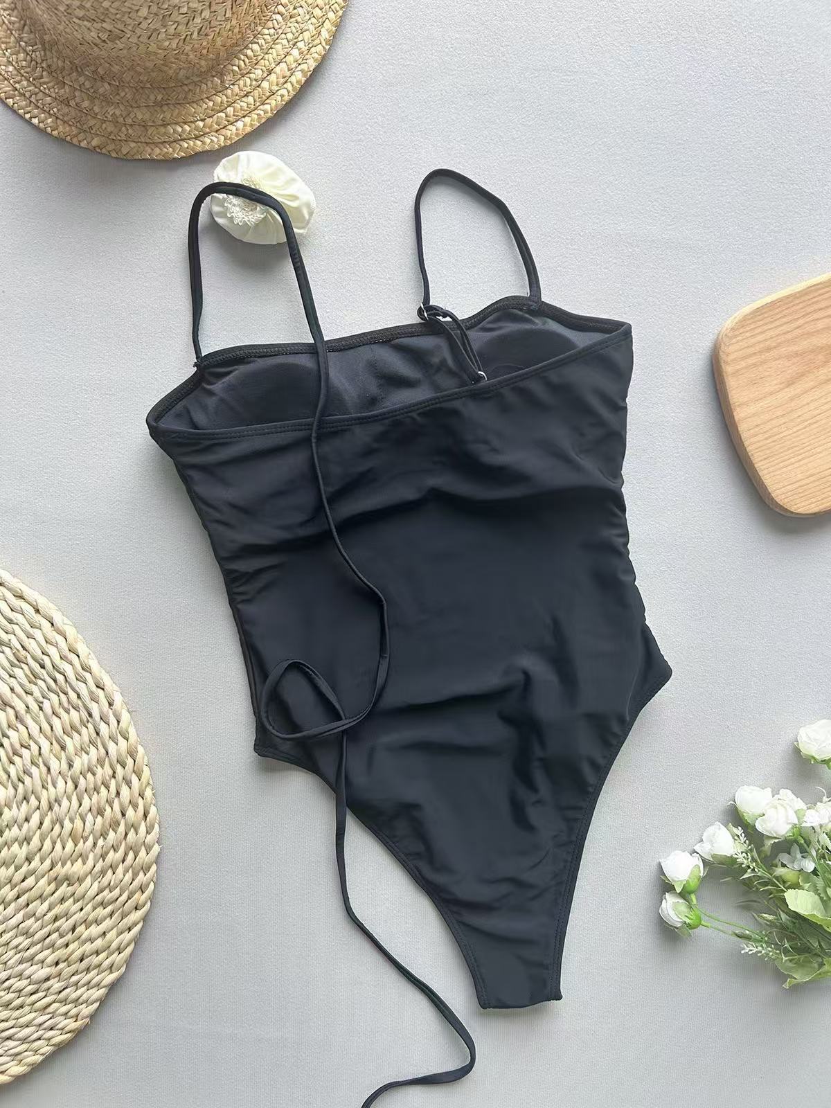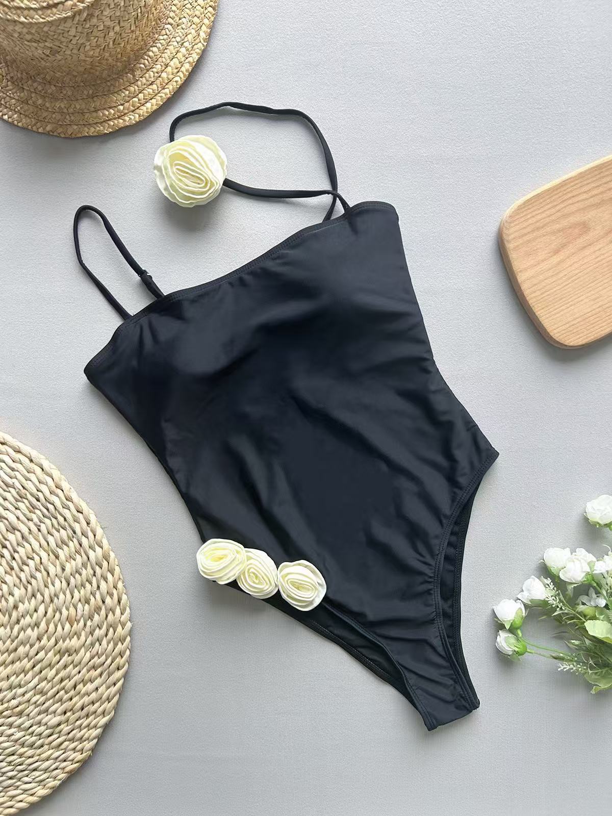 AliExpress Ins 비치 풀 슬림 크로스 국경 복고풍 꽃 수영복 헵번 스타일 유럽과 미국의 단색 수영복