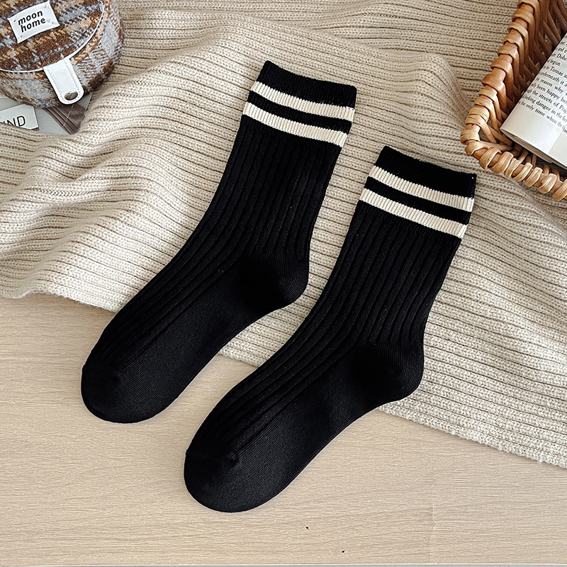 순 빨간색 양말 여성의 2 바 더블 바늘 안티 필링 코튼 양말 뼈없는 미드 튜브 양말 클래스 봄, 가을, 겨울 조커 도매스토어 가기
