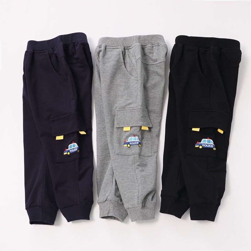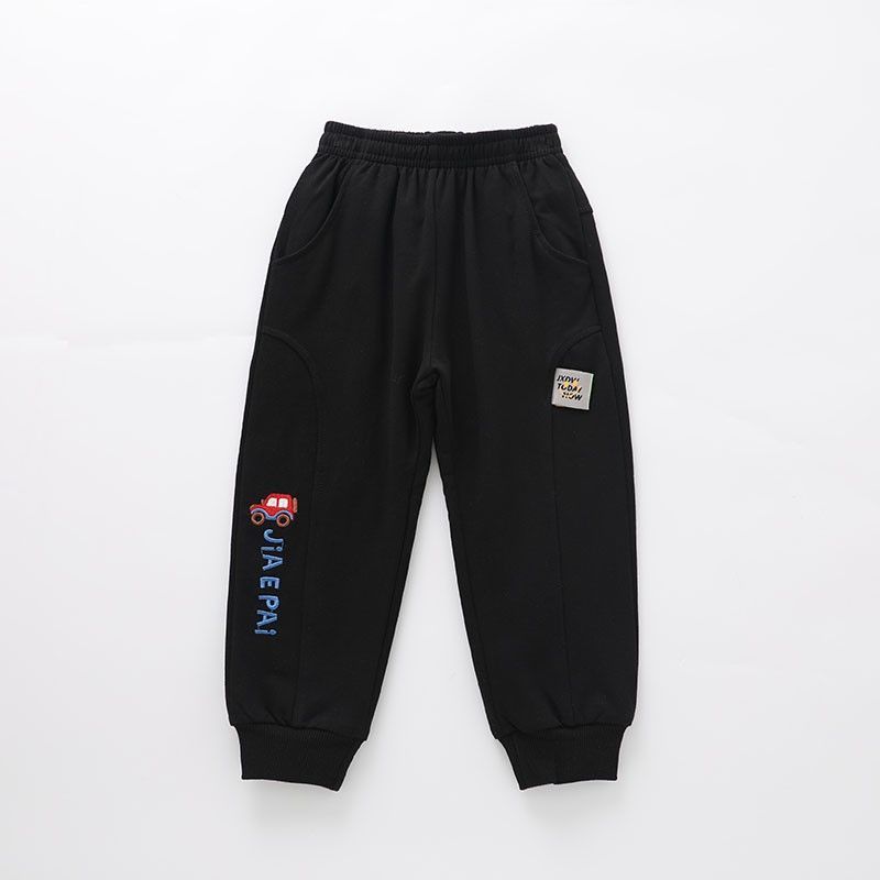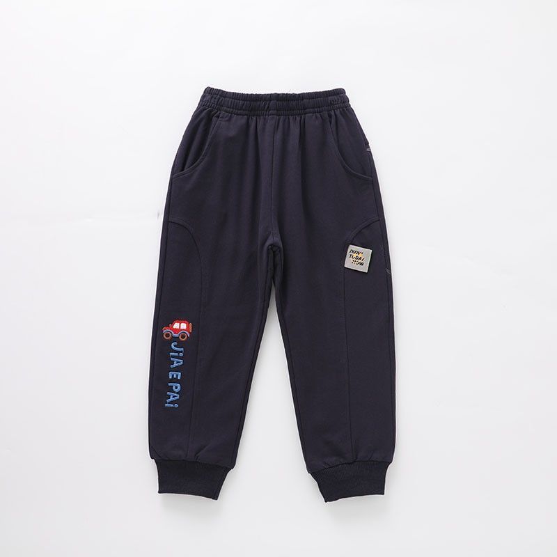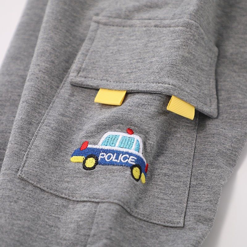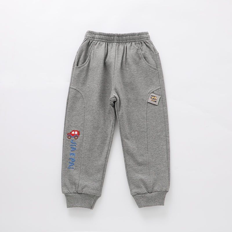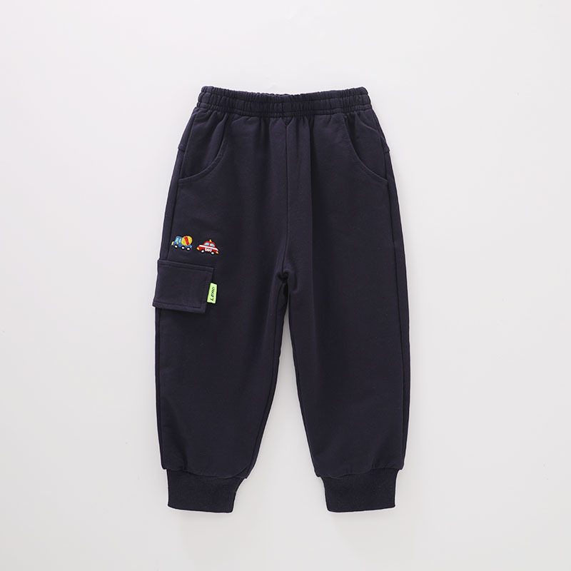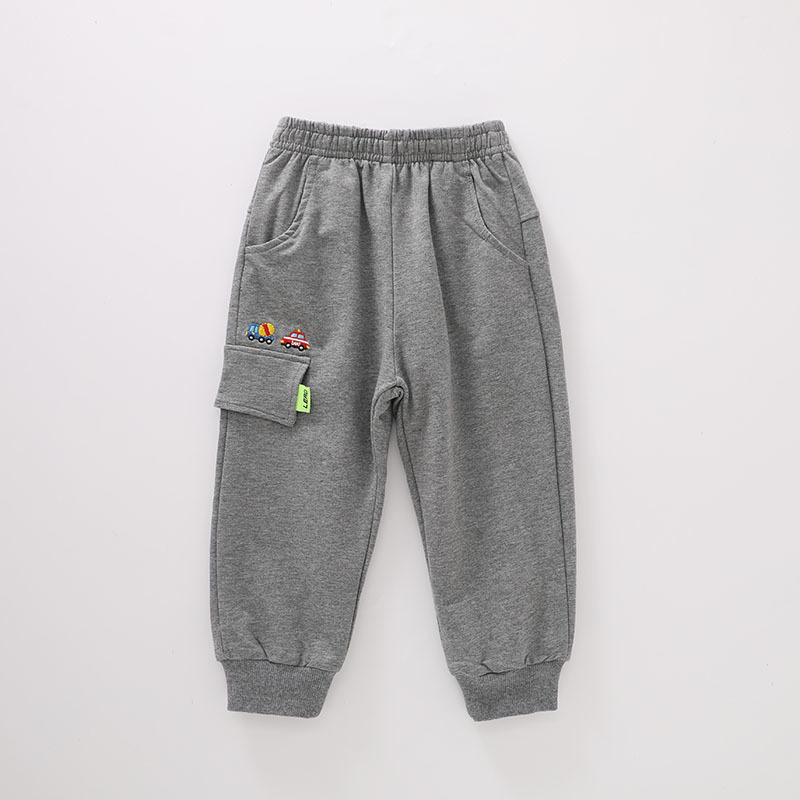 어린이 봄과 가을 얇은 더블 레이어 바지 남자 어린이 착용 아기 만화 자동차 공룡 봄 라미네이트 캐주얼 바지스토어 가기