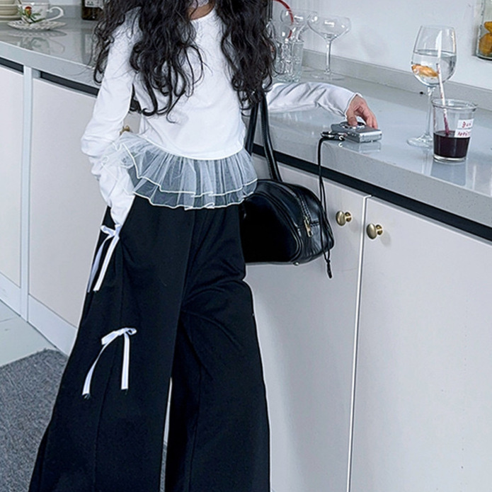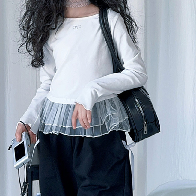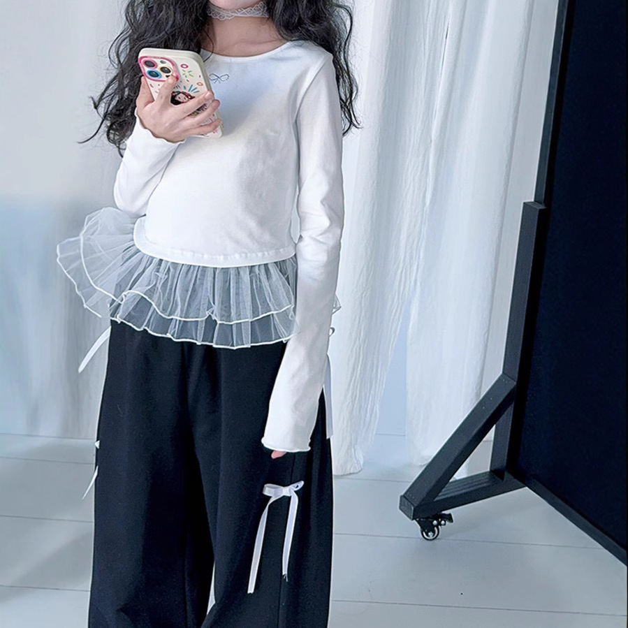 소녀 탑 봄과 가을 큰 어린이 소녀의 흰색 슬림 핏 짧은 발레 러플 레이스 헴 아동복