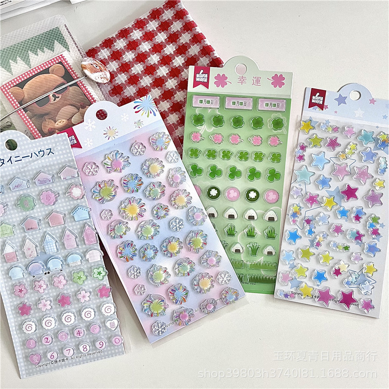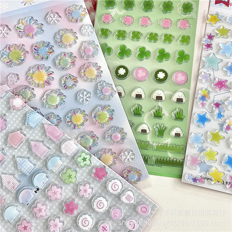 INS 스티커 릴리프 3 차원 4 잎 클로버 귀엽고 실용적인 데코 쉐이크 휴대 전화 DIY 장식 소재 투명 스티커