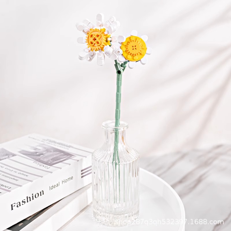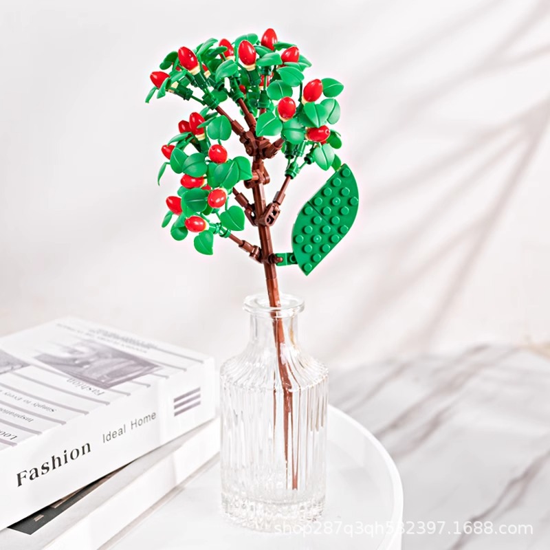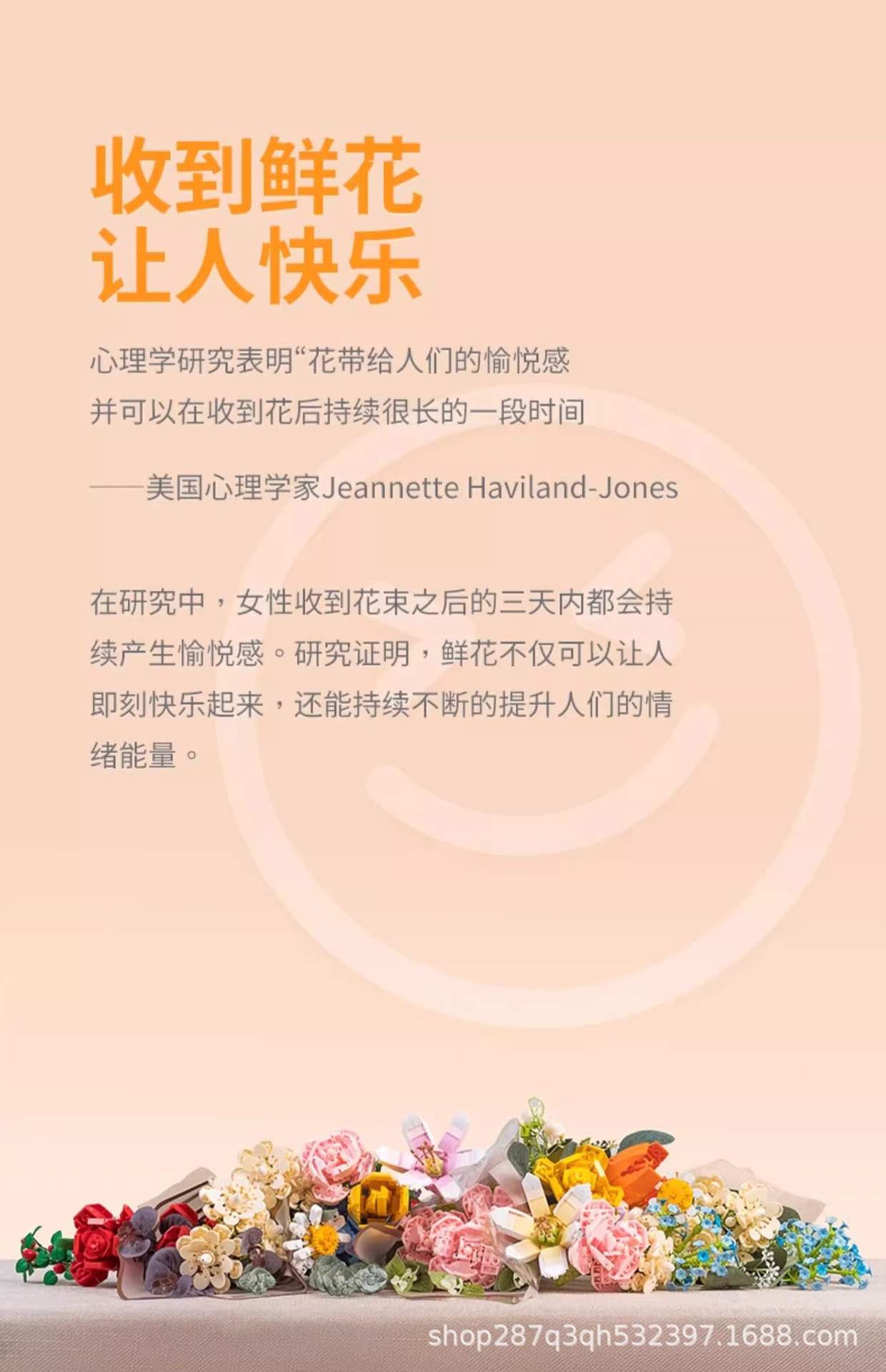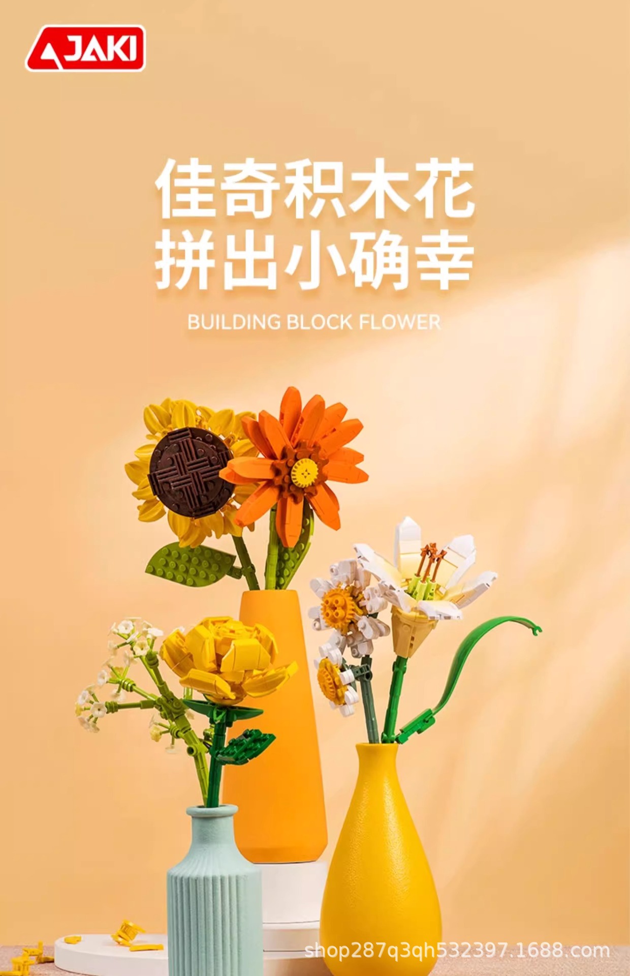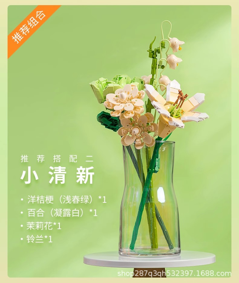 Jiaqi 빌딩 블록 꽃다발 로즈 장식품 장식 DIY 조립 건물 블록 소년과 소녀 여자 친구 발렌타인 데이 선물스토어 가기