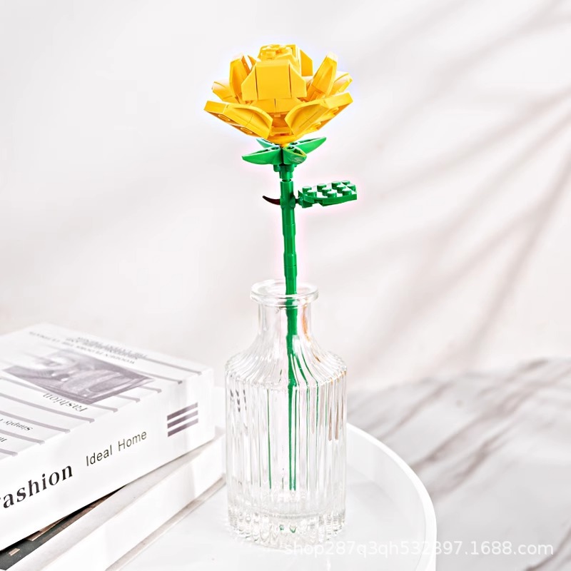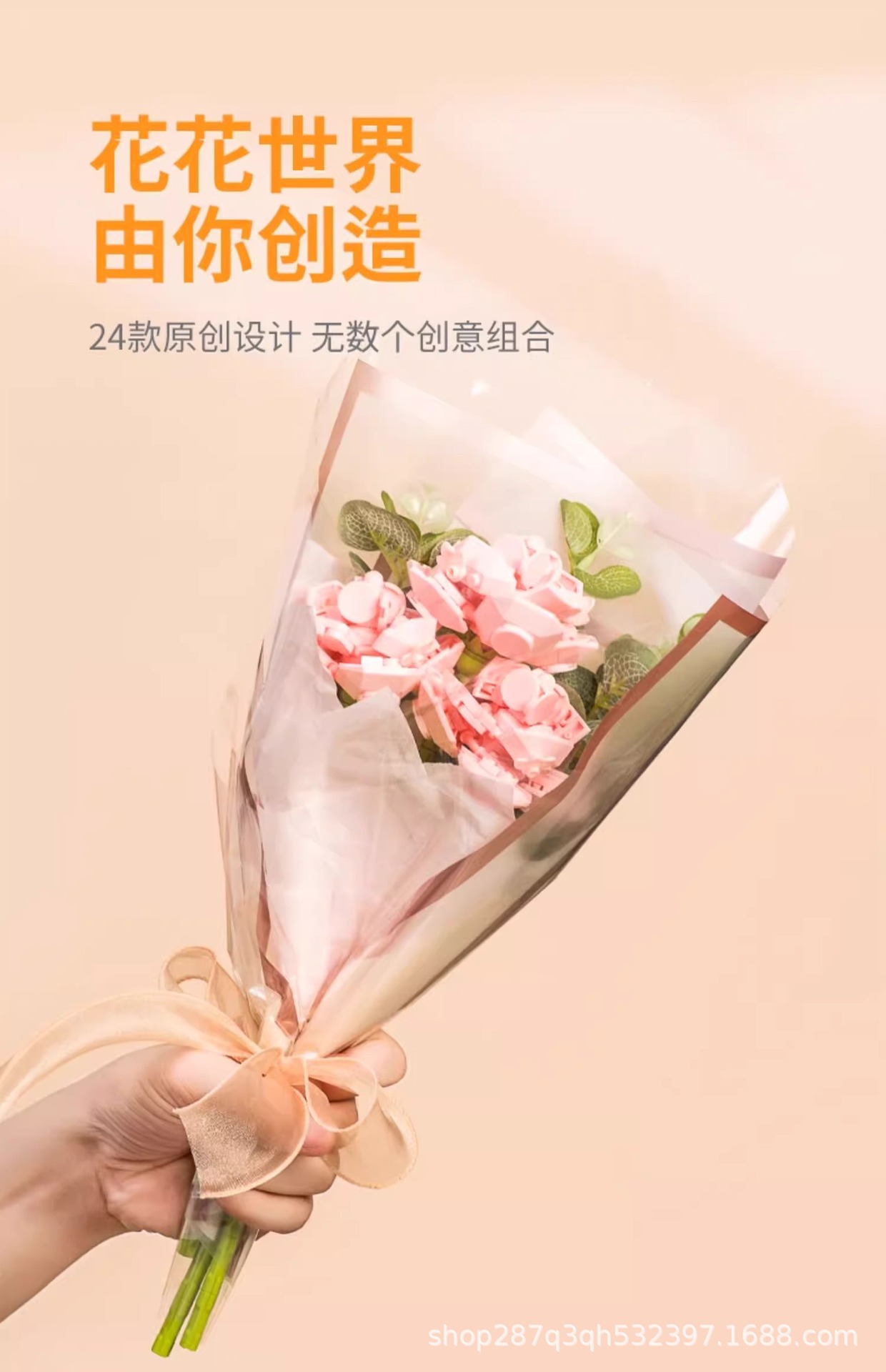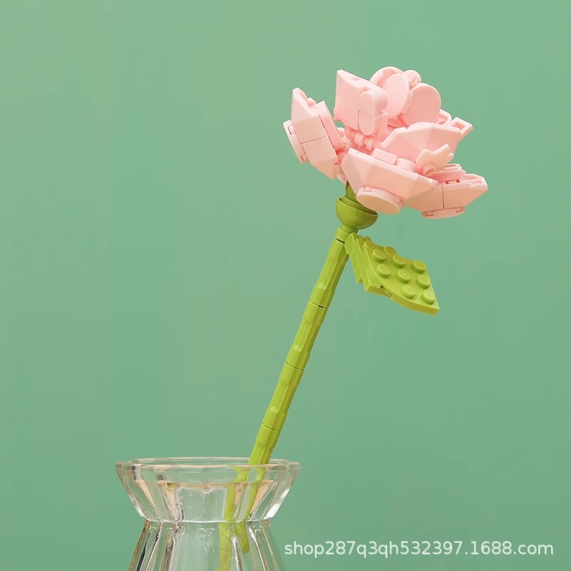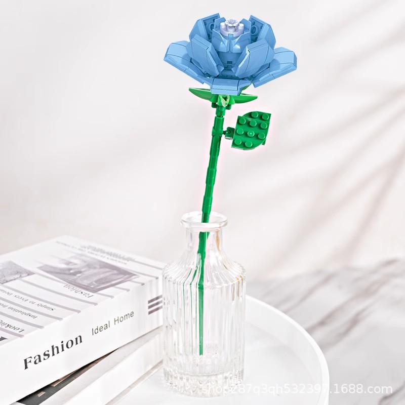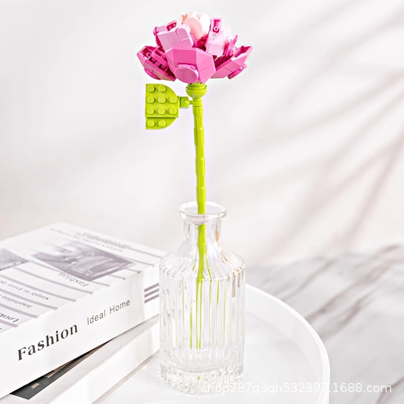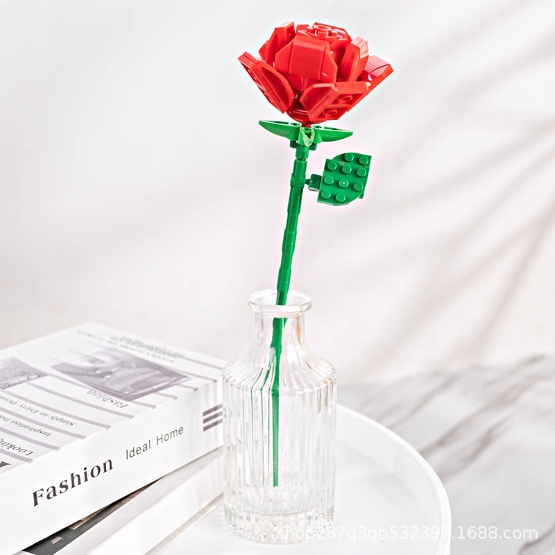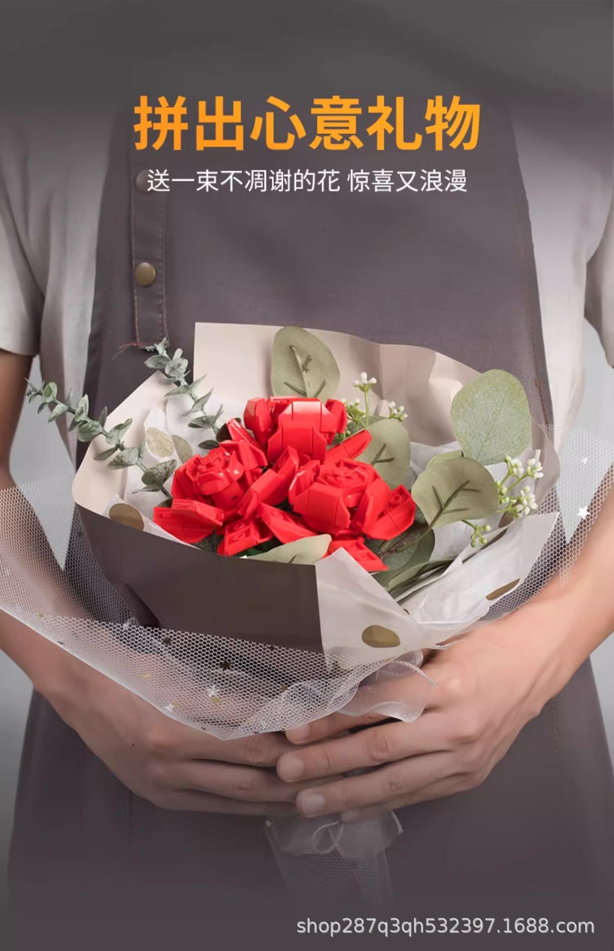 Jiaqi 빌딩 블록 꽃다발 로즈 장식품 장식 DIY 조립 건물 블록 소년과 소녀 여자 친구 발렌타인 데이 선물