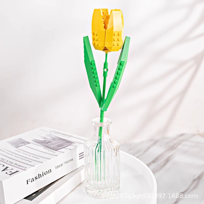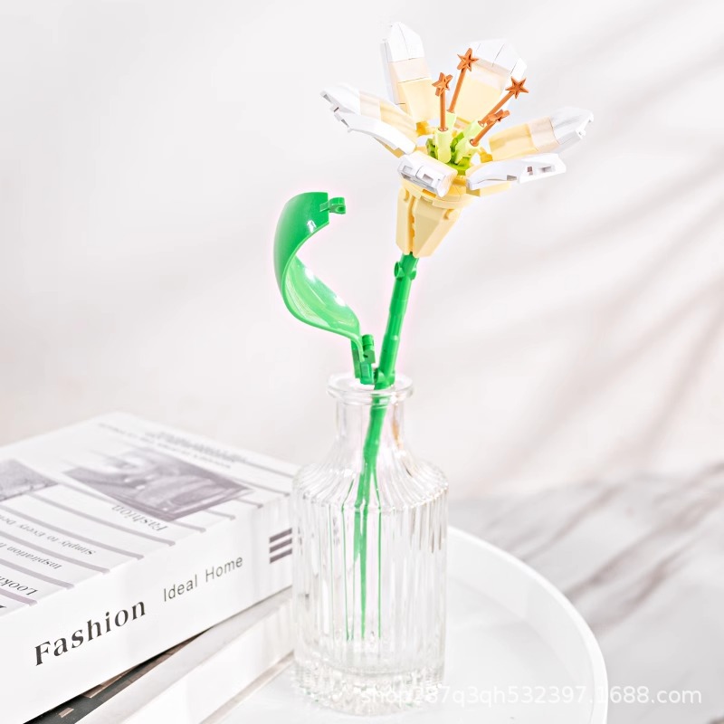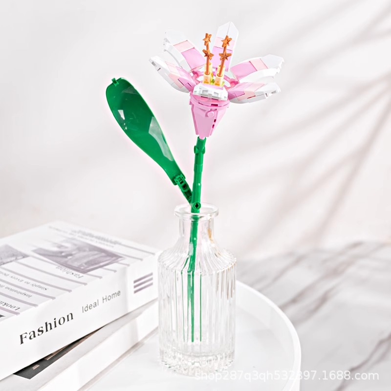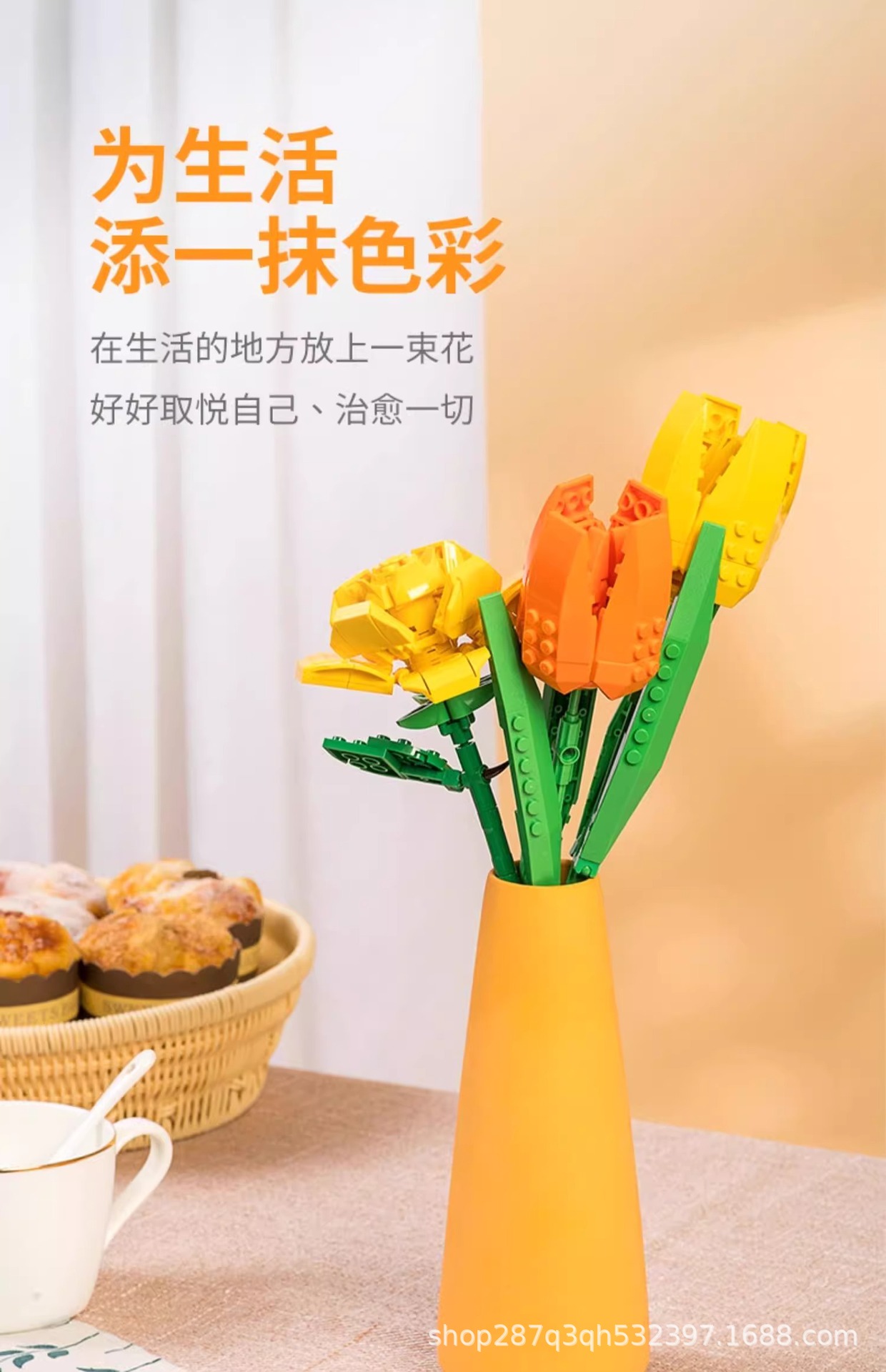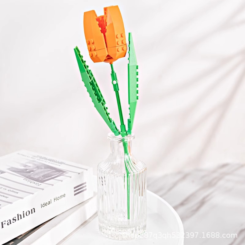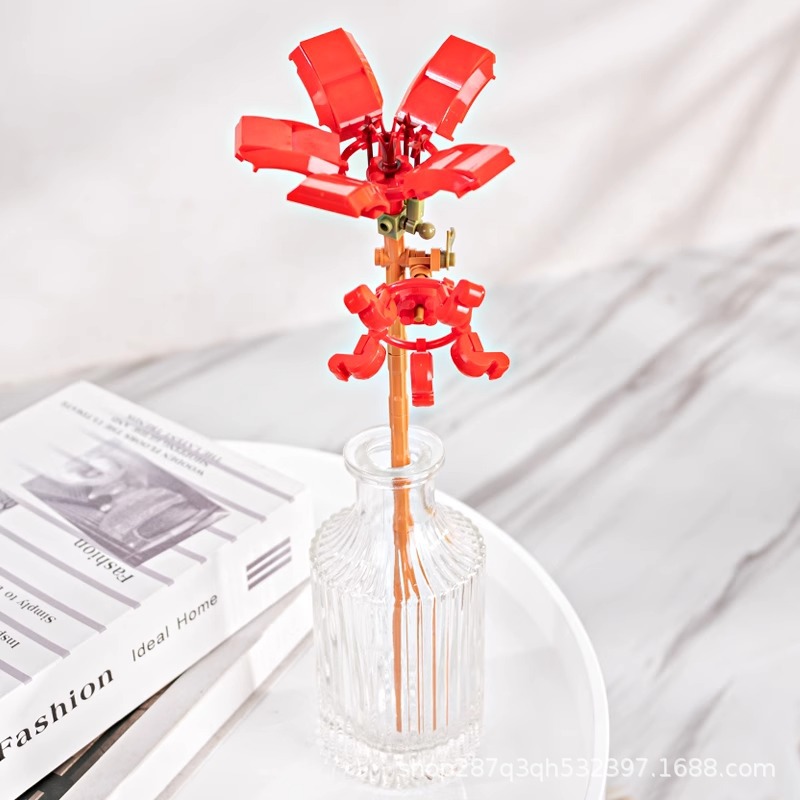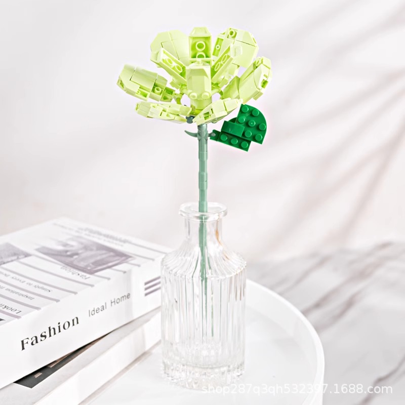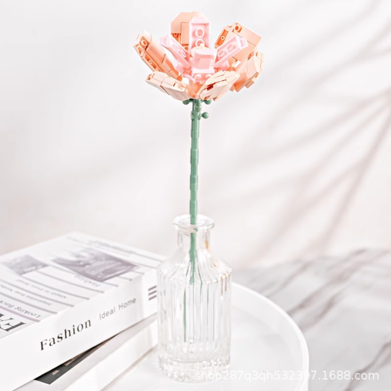 Jiaqi 빌딩 블록 꽃다발 로즈 장식품 장식 DIY 조립 건물 블록 소년과 소녀 여자 친구 발렌타인 데이 선물