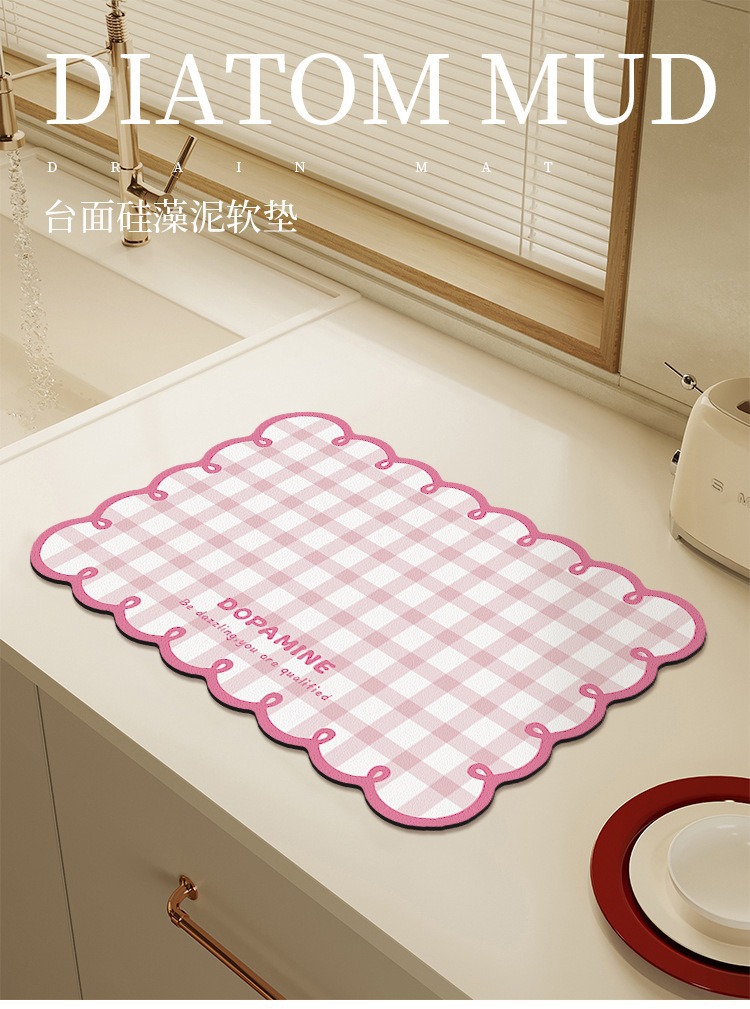 도파민 작은 신선한 주방 조리대 건조 패드 빠른 건조 물 흡수 데스크탑 미끄럼 방지 열 절연 Diatom 진흙 테이블 매트스토어 가기