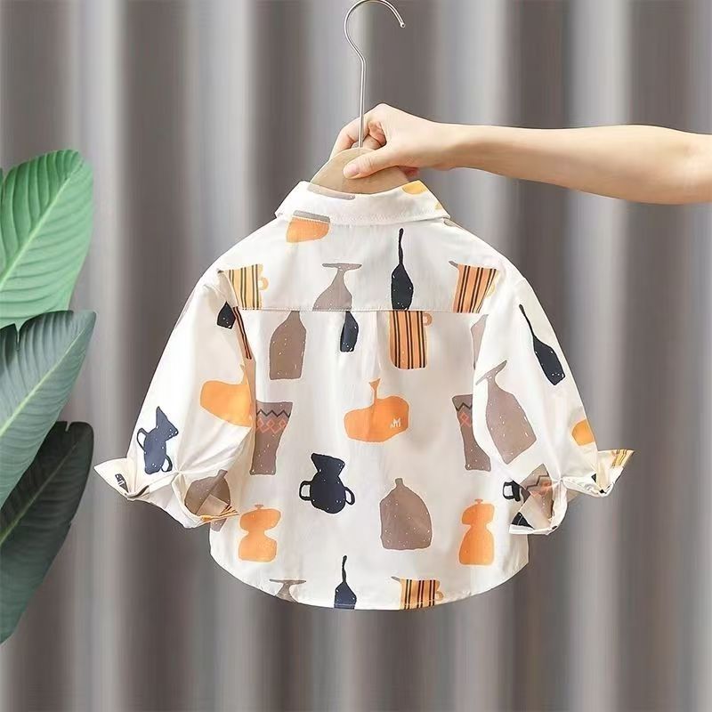 2025 봄과 가을 새로운 어린이 소년의 인쇄 된 셔츠 유행 셔츠 소년 및 어린이 봄 옷