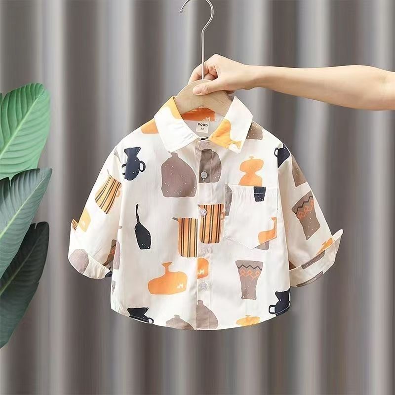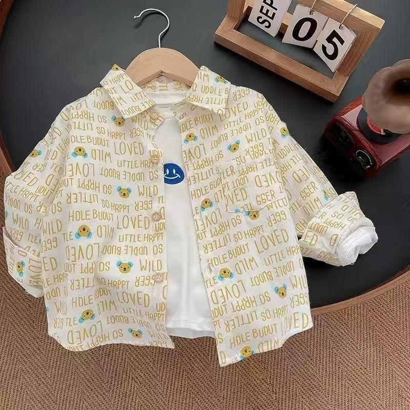2025 봄과 가을 새로운 어린이 소년의 인쇄 된 셔츠 유행 셔츠 소년 및 어린이 봄 옷스토어 가기