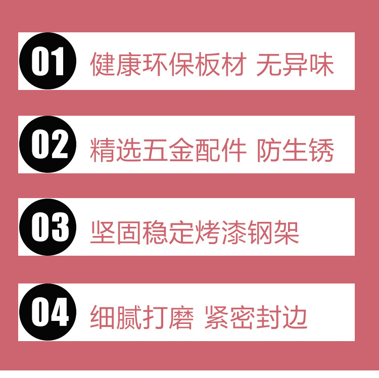 我们常规产品架子会比板子窄3厘米,前后左右各出沿1.5(可以自己控制出沿)厘米,方便脚线放置,我们的高度标的都是总高度,总高度80,去掉上面层板和钢架的厚度,