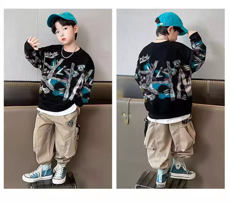 봄과 가을 긴 소매 티셔츠 소년 2025 새로운 십대 학생들 잘 생긴 캐주얼 땀 남성 큰 아동복 탑스토어 가기