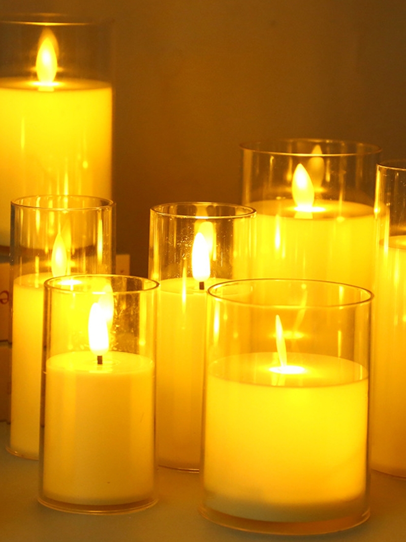 아마존 LED 전자 촛불 아크릴 유리 캔들 램프 생일 파티 장식 동요 Yuan Luo