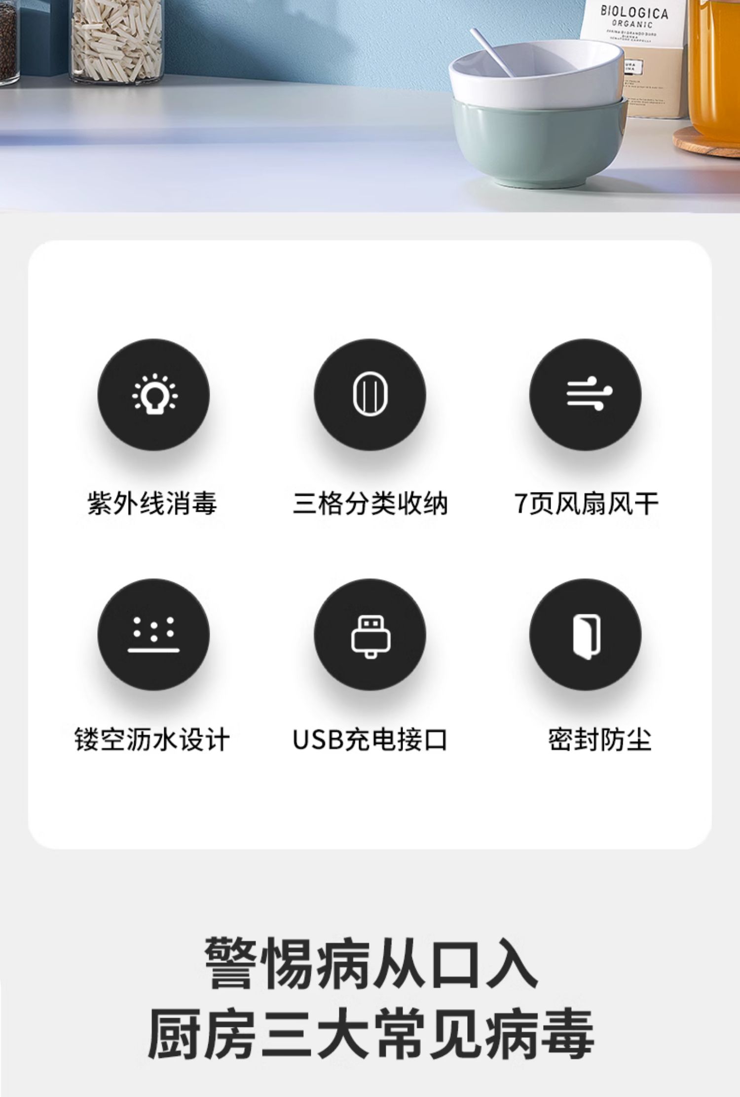 Ocahn 젓가락 소독기 주방 가정용 소형 지능형 자외선 충전식 소독 벽걸이 퀵 서브스토어 가기