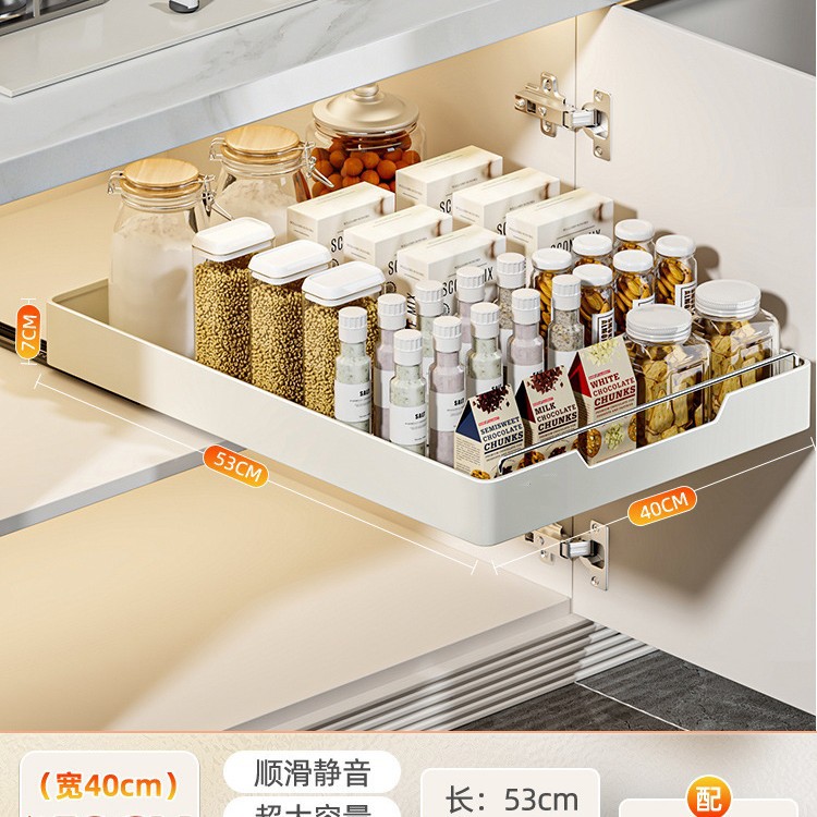 펀치없는 주방 캐비닛 풀 바구니 풀 아웃 식기 저장 랙 낮은 싱크 저장 랙 조미료 병 보관 상자스토어 가기