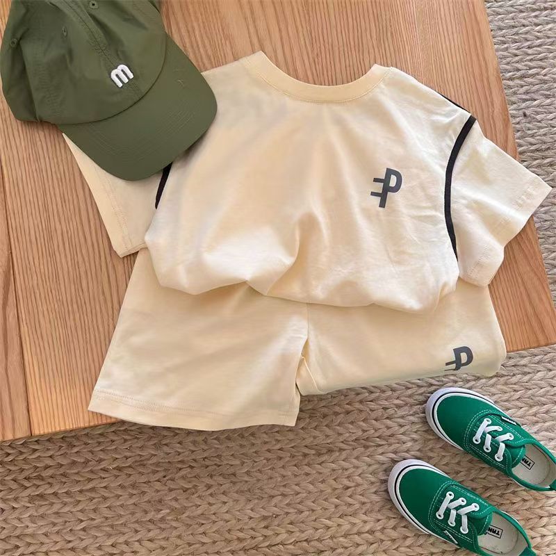 2025 아동복 어린이 세트 여름 편지 면 반팔 소년 · 소녀 여름 착용 한국 느슨한 반바지 투피스 세트