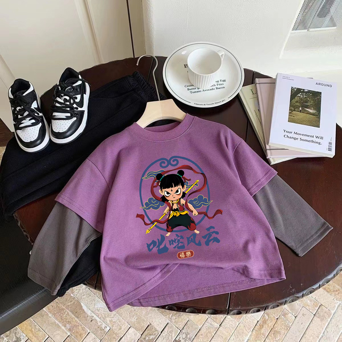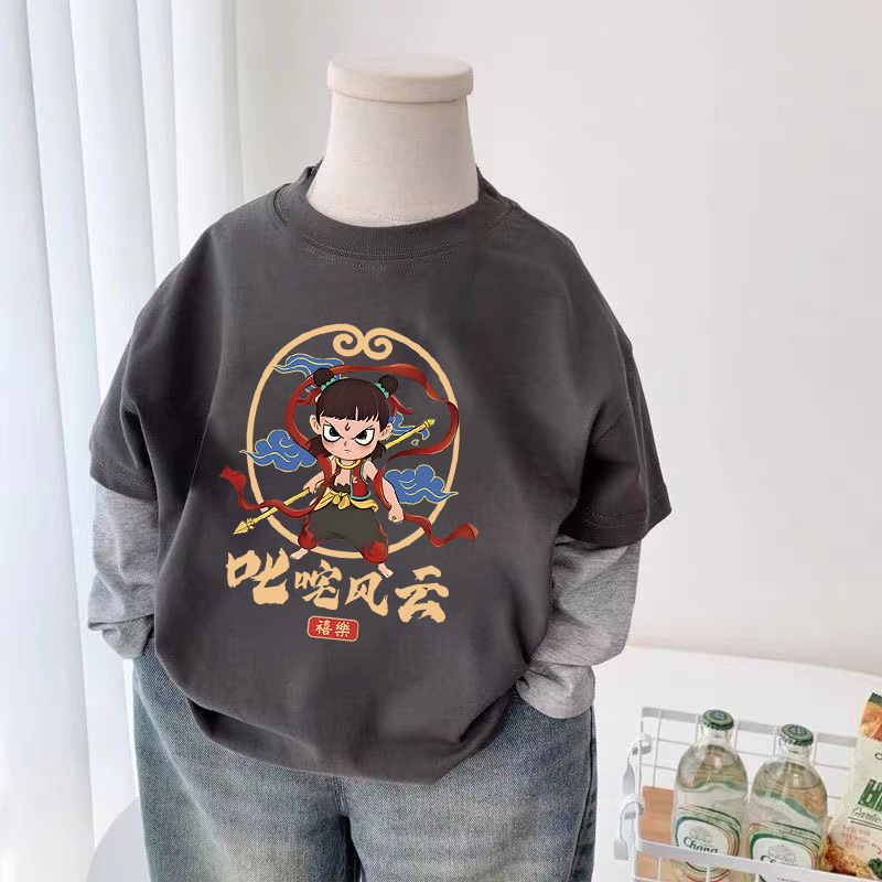 코튼 어린이 가짜 두 조각 긴팔 티셔츠 소년과 소녀 봄 가을 새로운 일본 스타일 귀여운 서양식 탑베이스 셔츠