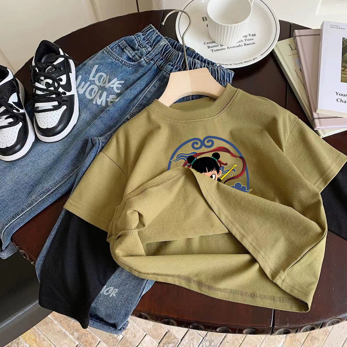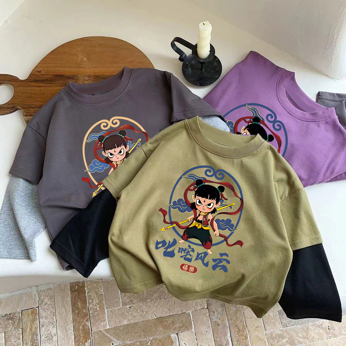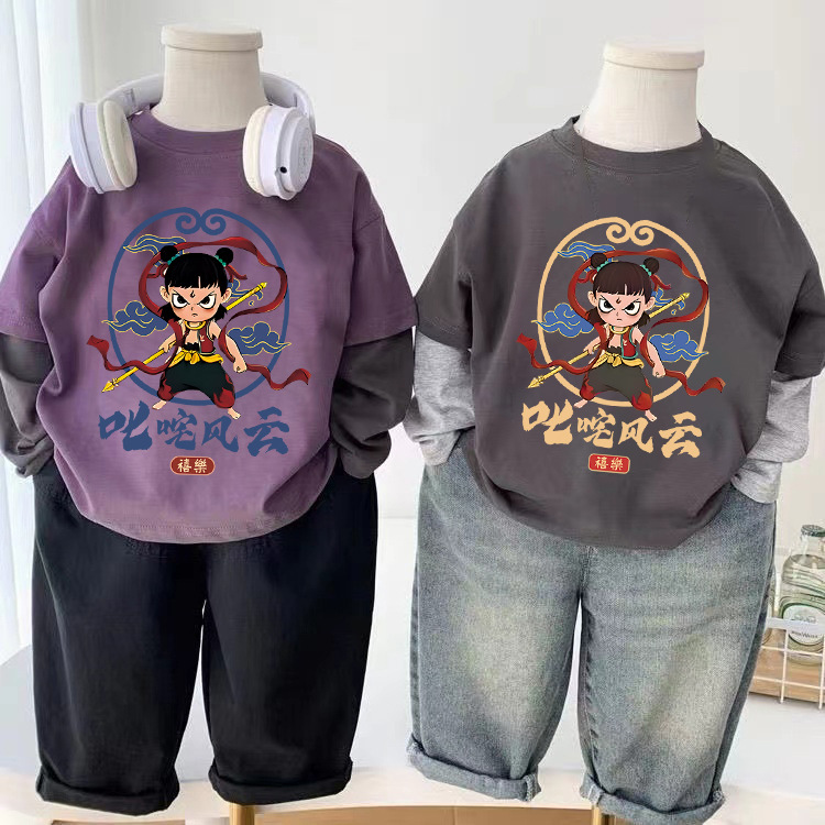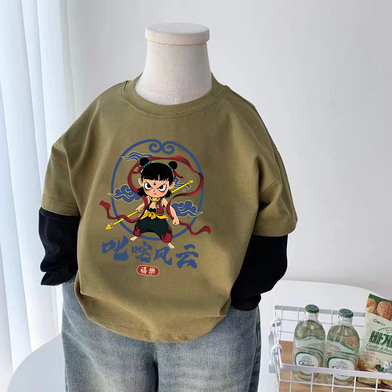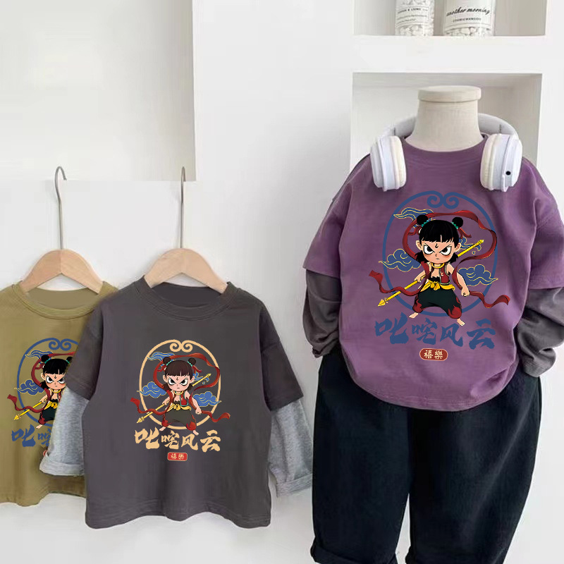 코튼 어린이 가짜 두 조각 긴팔 티셔츠 소년과 소녀 봄 가을 새로운 일본 스타일 귀여운 서양식 탑베이스 셔츠스토어 가기