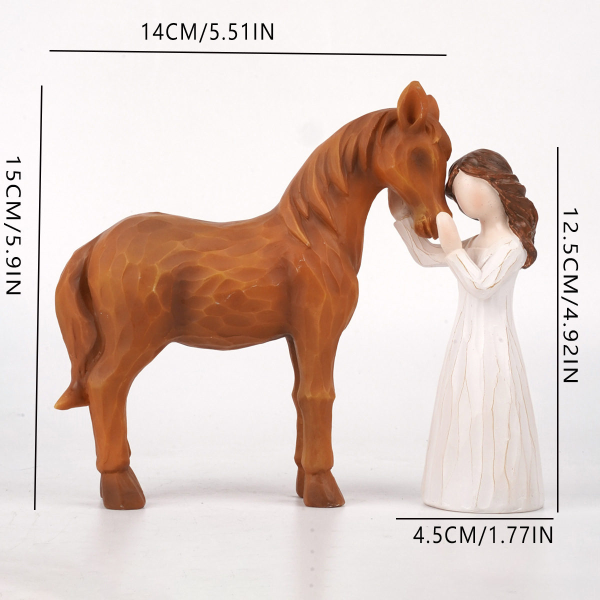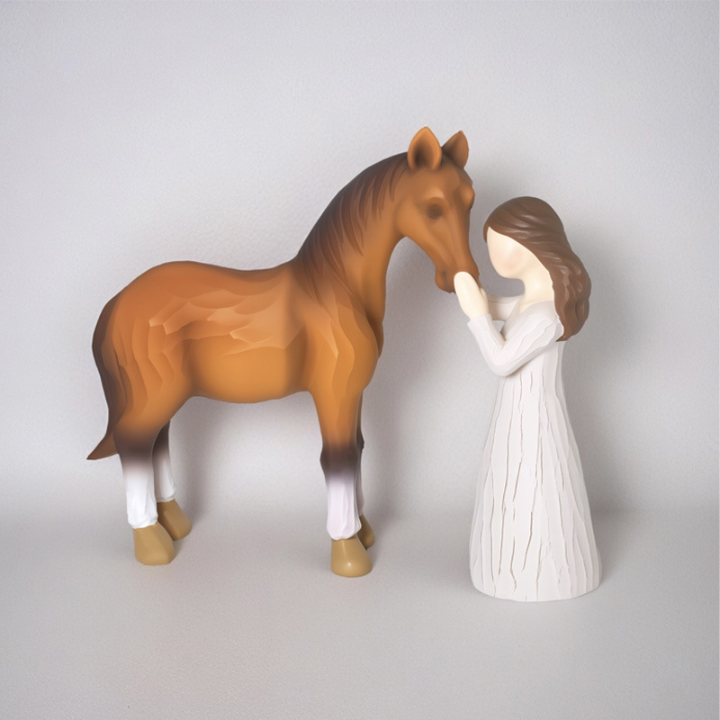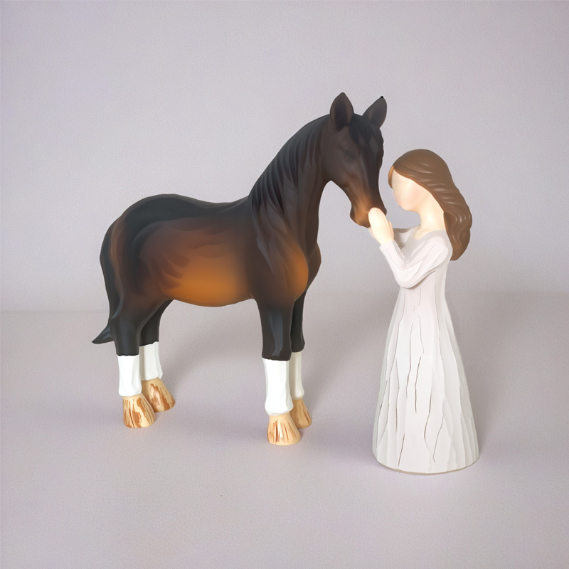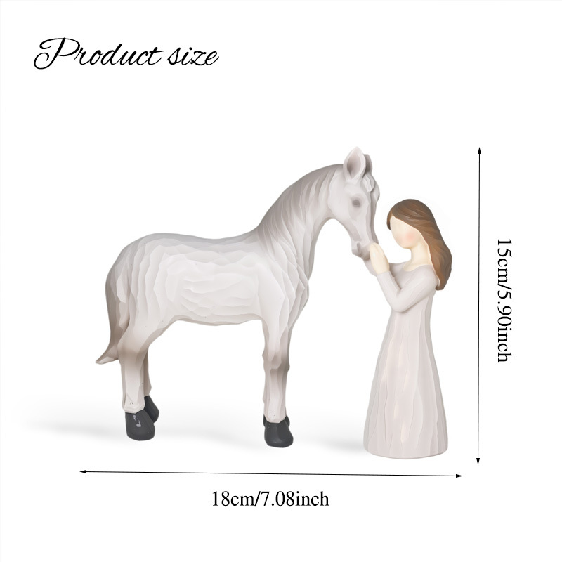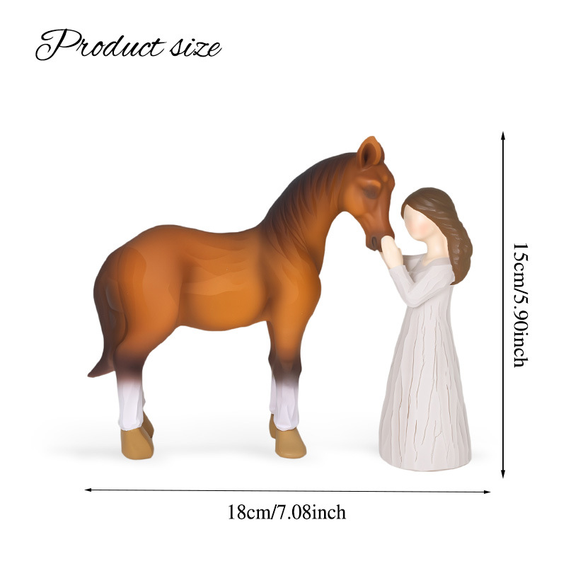 국경을 넘나드는 소녀와 말 승마 조각상 장식품 동물과 포옹하는 시리즈 레진 공예품 가정 장식 선물