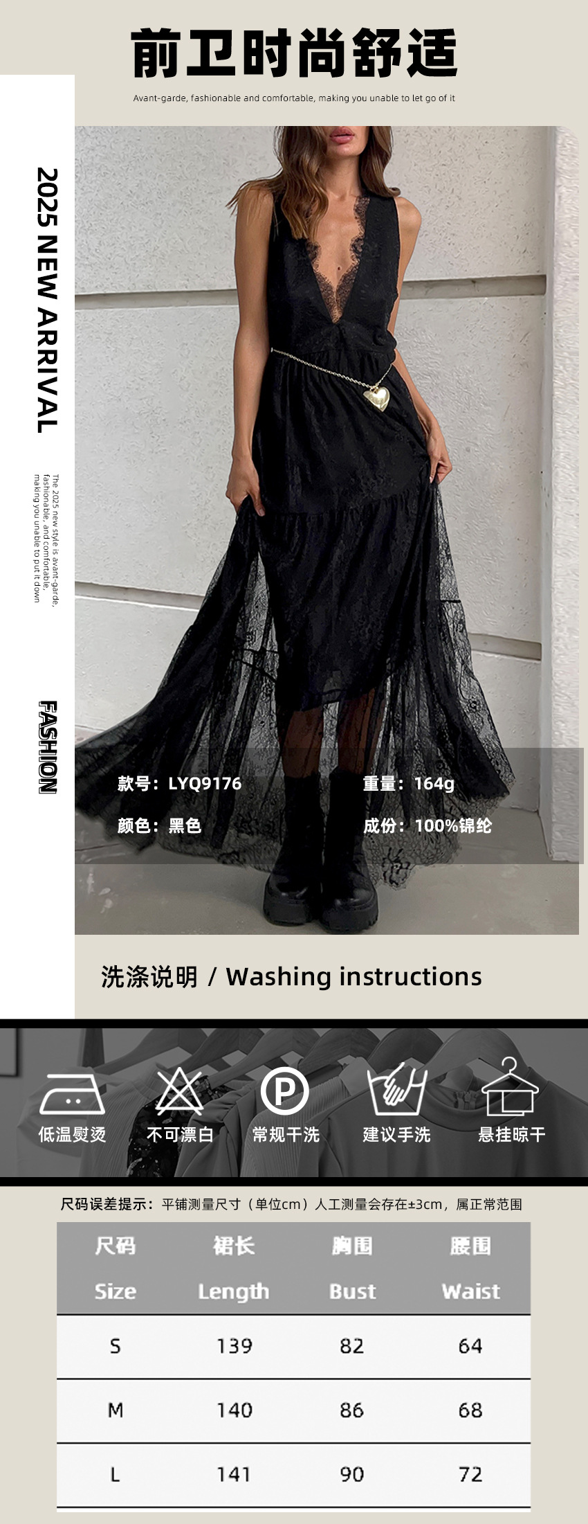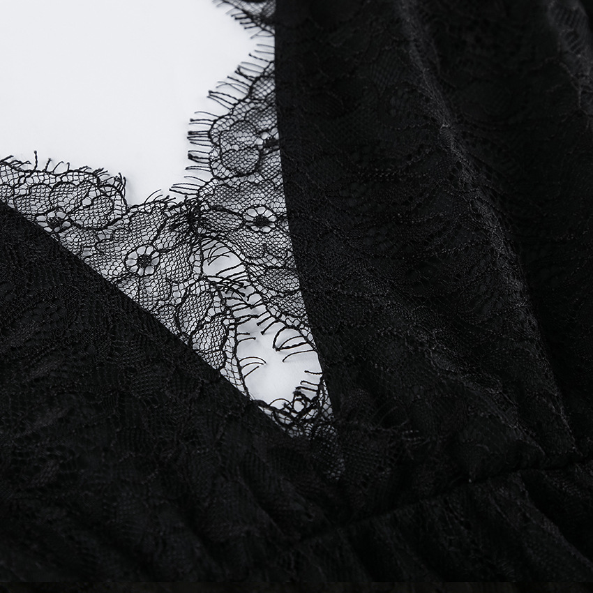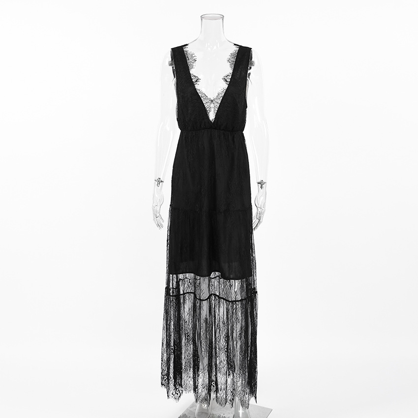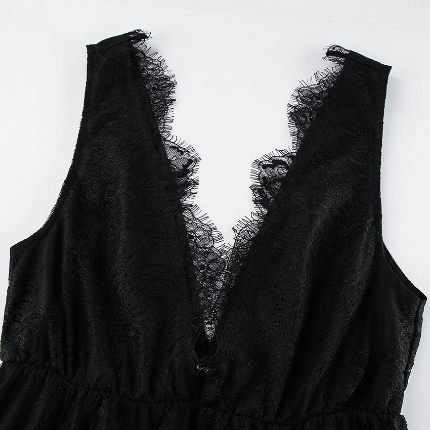 유럽과 미국의 섹시한 블랙 레이스 원피스 여성 여름 패션 Ins Backless V-neck A- line 원피스 여성 원피스