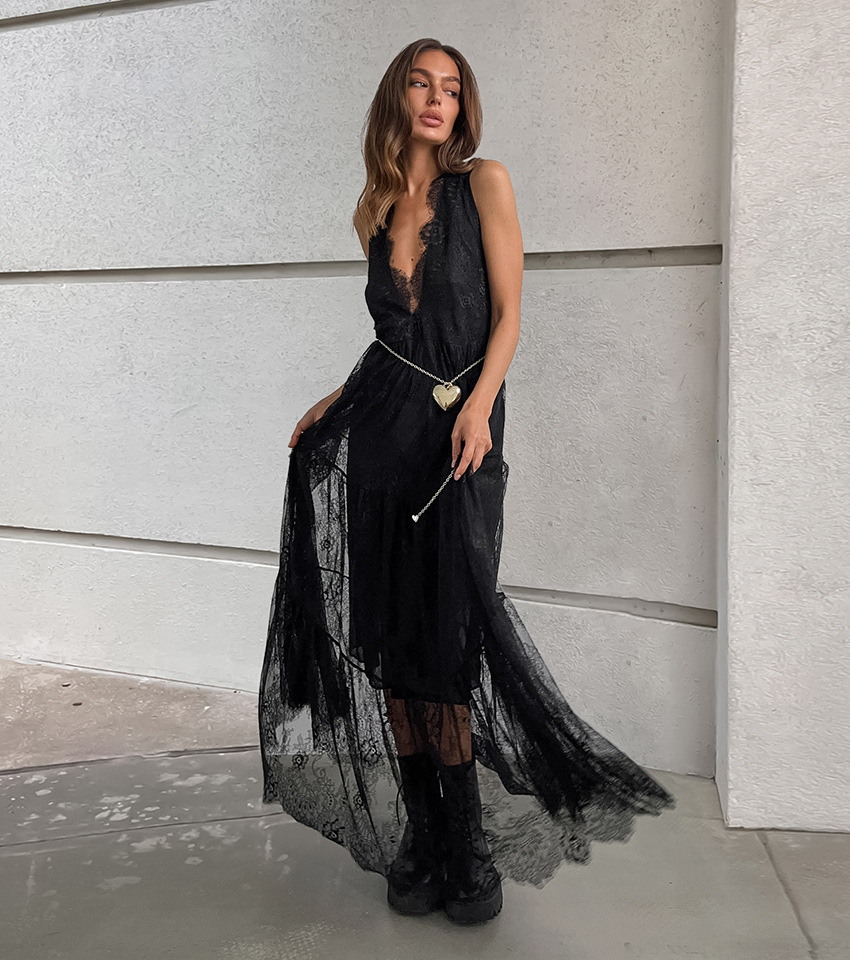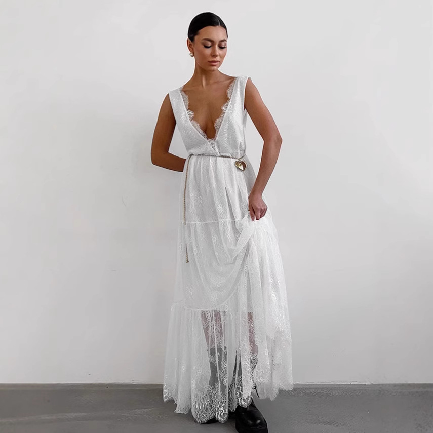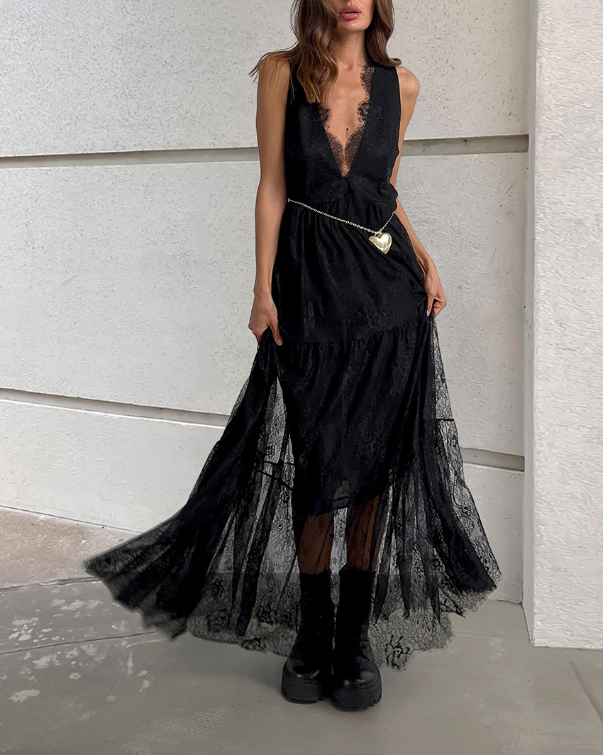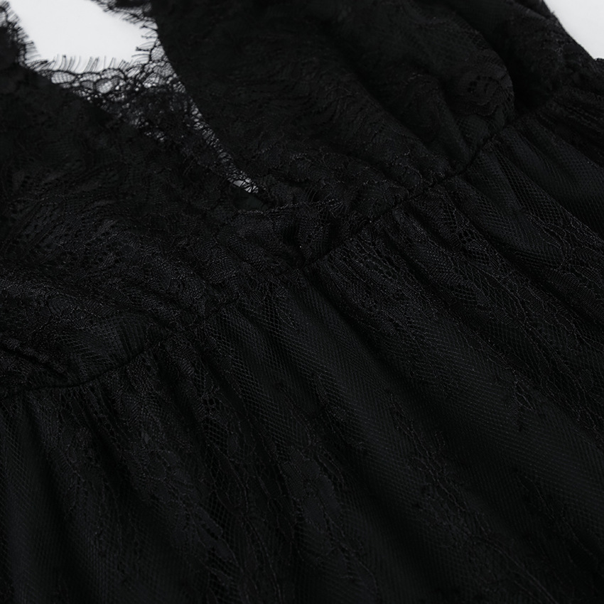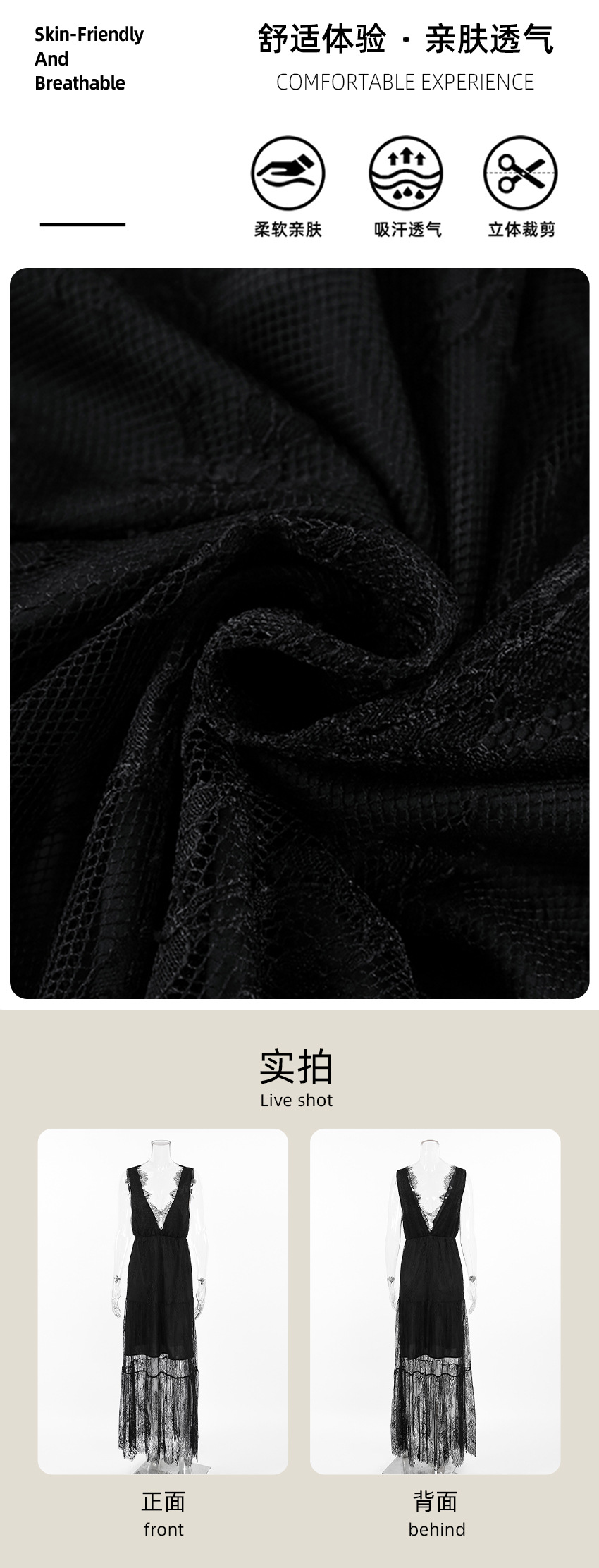 유럽과 미국의 섹시한 블랙 레이스 원피스 여성 여름 패션 Ins Backless V-neck A- line 원피스 여성 원피스