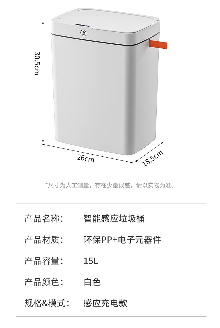 • 화이트 - 배터리 15L - 2모드 [손을 흔들면 열림 + 무릎을 구부려 열림] + 무음
