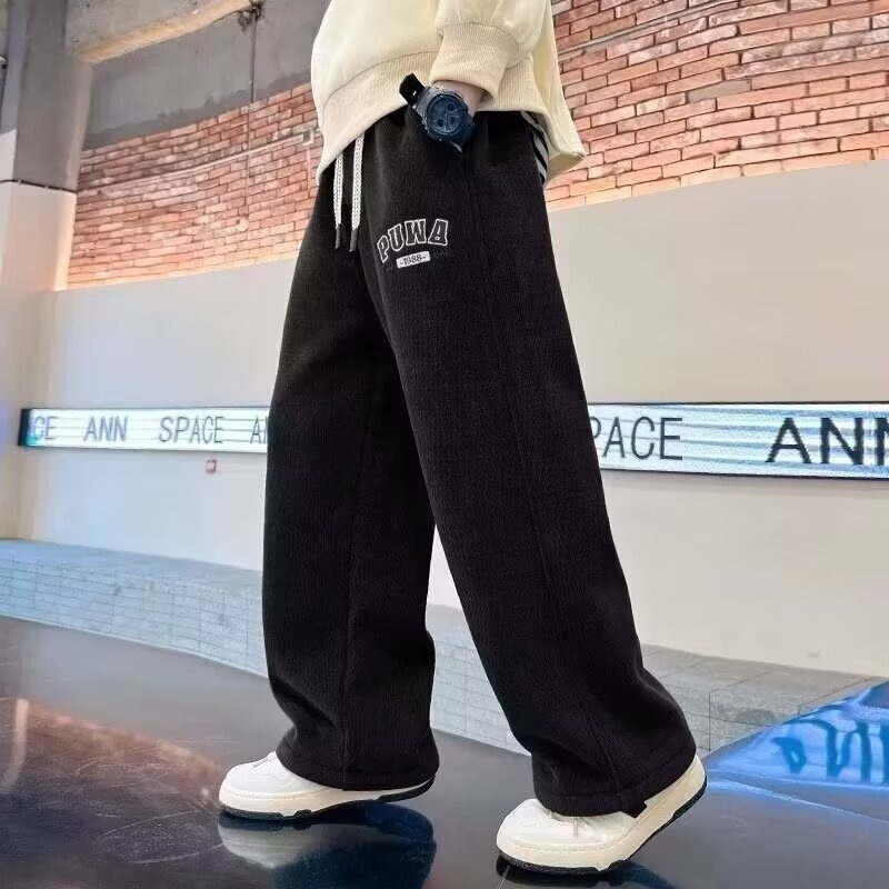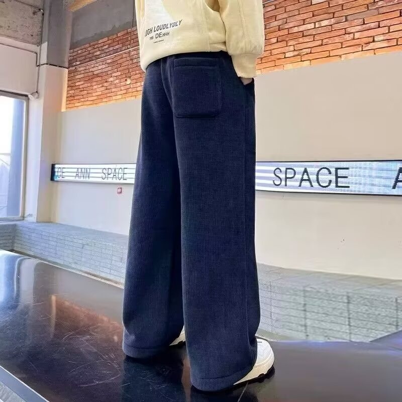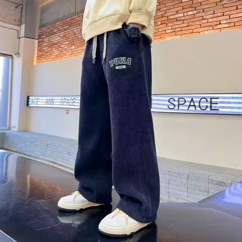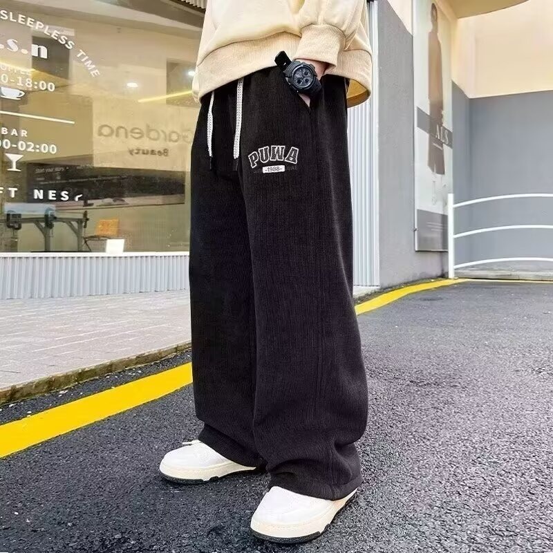 2025 봄과 가을 새로운 스타일 소년을위한 아동복 큰 어린이 더피 잘 생긴 소년 스트레이트 루즈 코듀로이 스포츠 바지