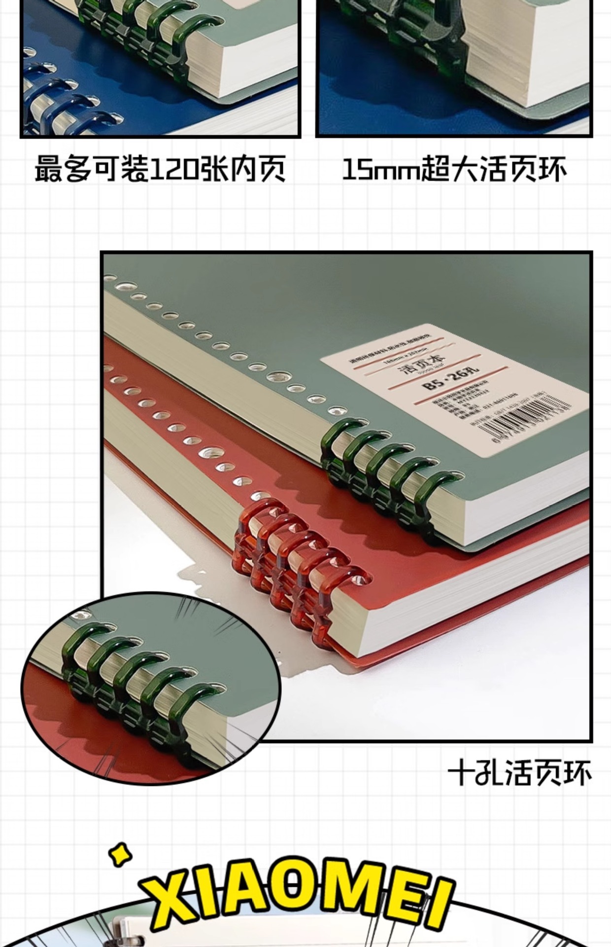 중학교 및 고등학생을위한 b5 핸즈프리 느슨한 잎 노트북 분리형 코일 북 a5 두꺼운 대학생 노트를 사용하기 쉬운 노트북스토어 가기