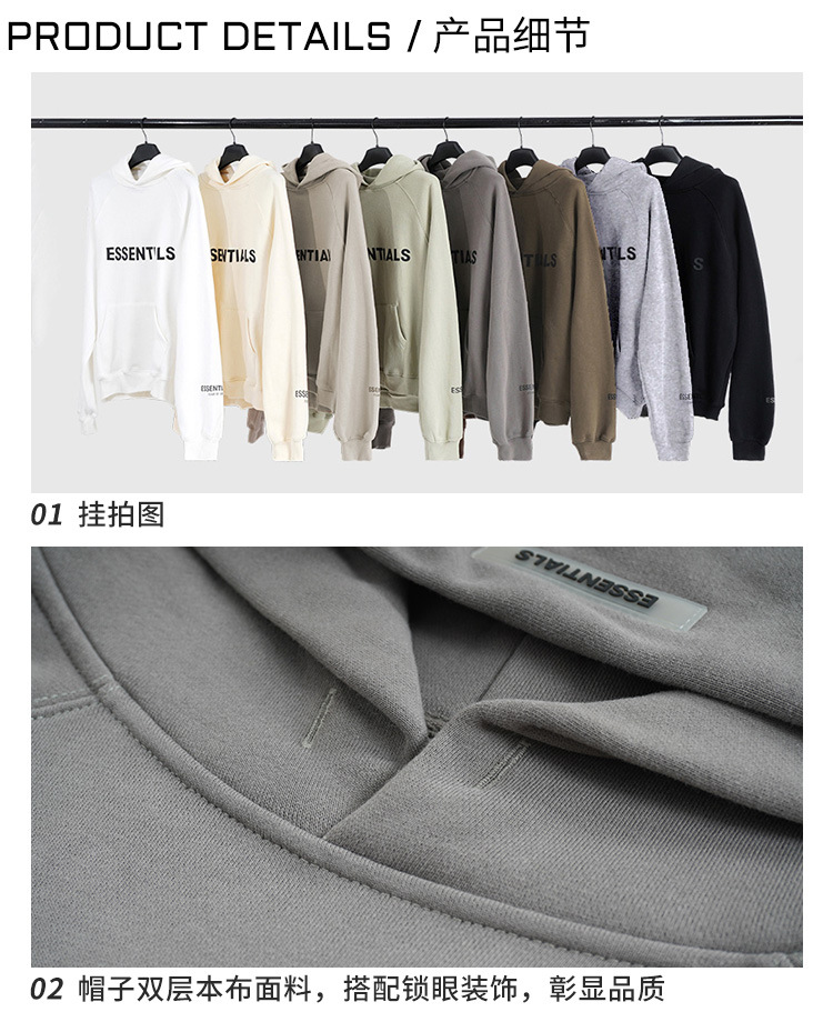 FOG 더블 라인 ESSENTIALS 더블 라인 가슴 편지 후드 스웨터 남성 하이 스트리트 느슨한 코트 풀오버 후드스토어 가기