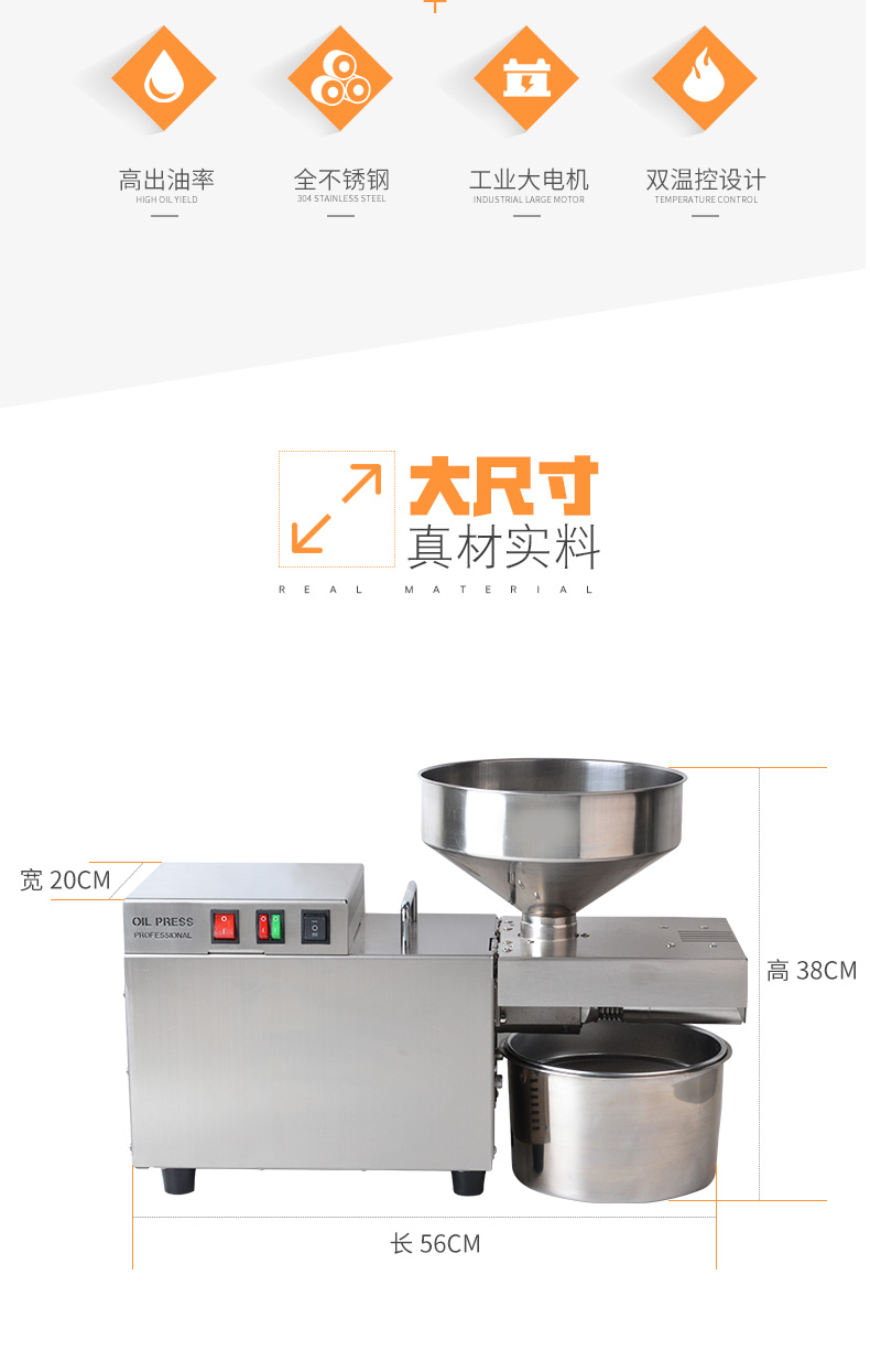 레인저 상업용 가정용 패스트 오일 프레스 전기 중소 스테인리스 자동 지능형 감기 및 핫 오일 프레스