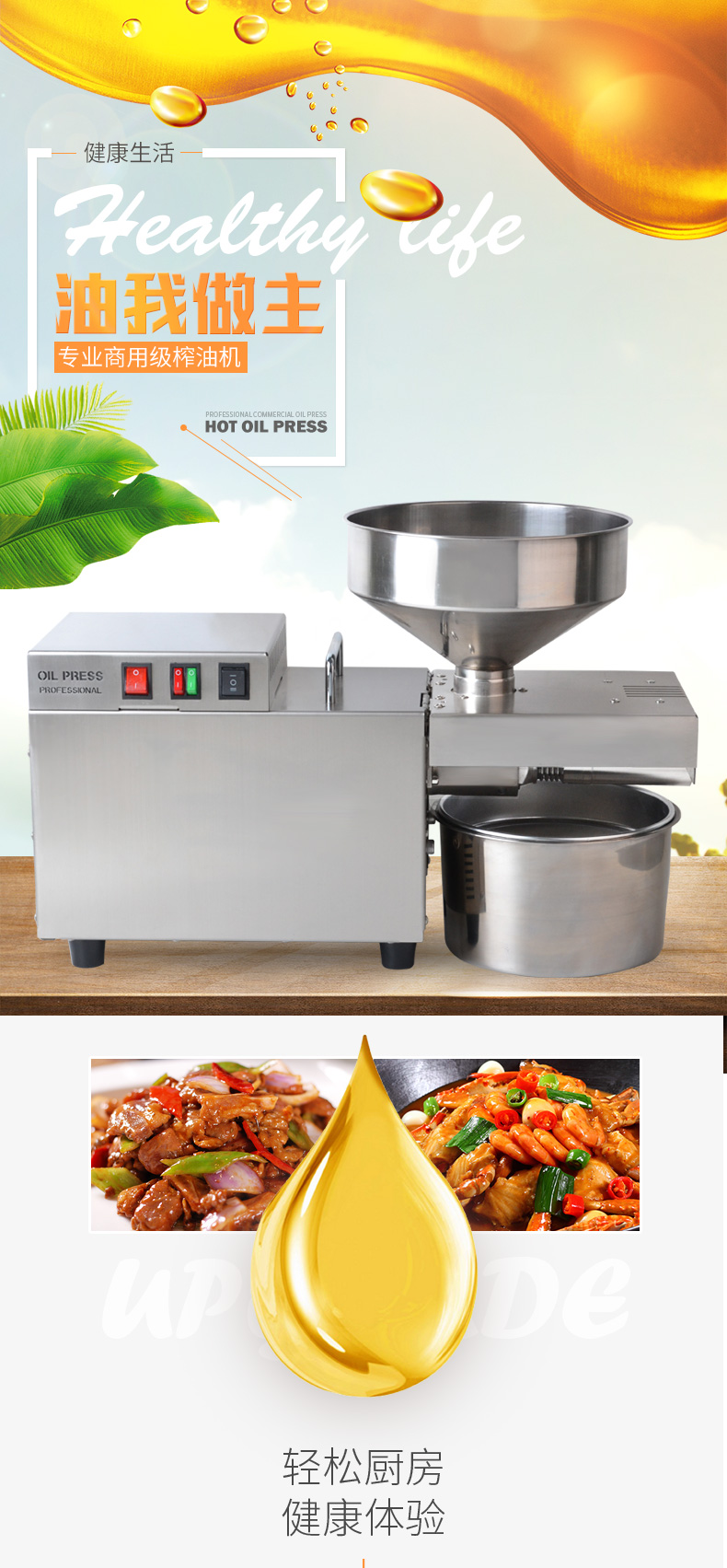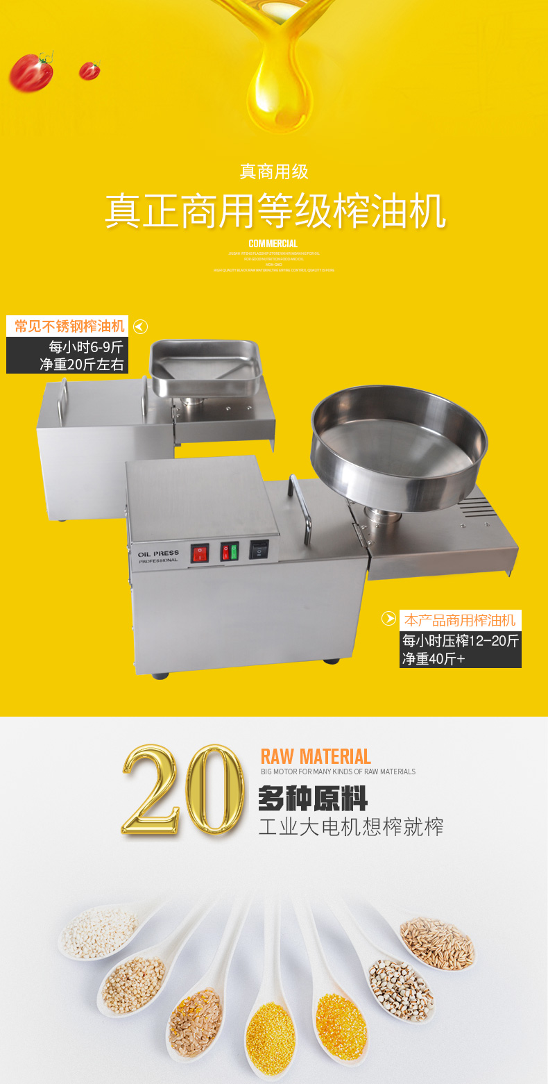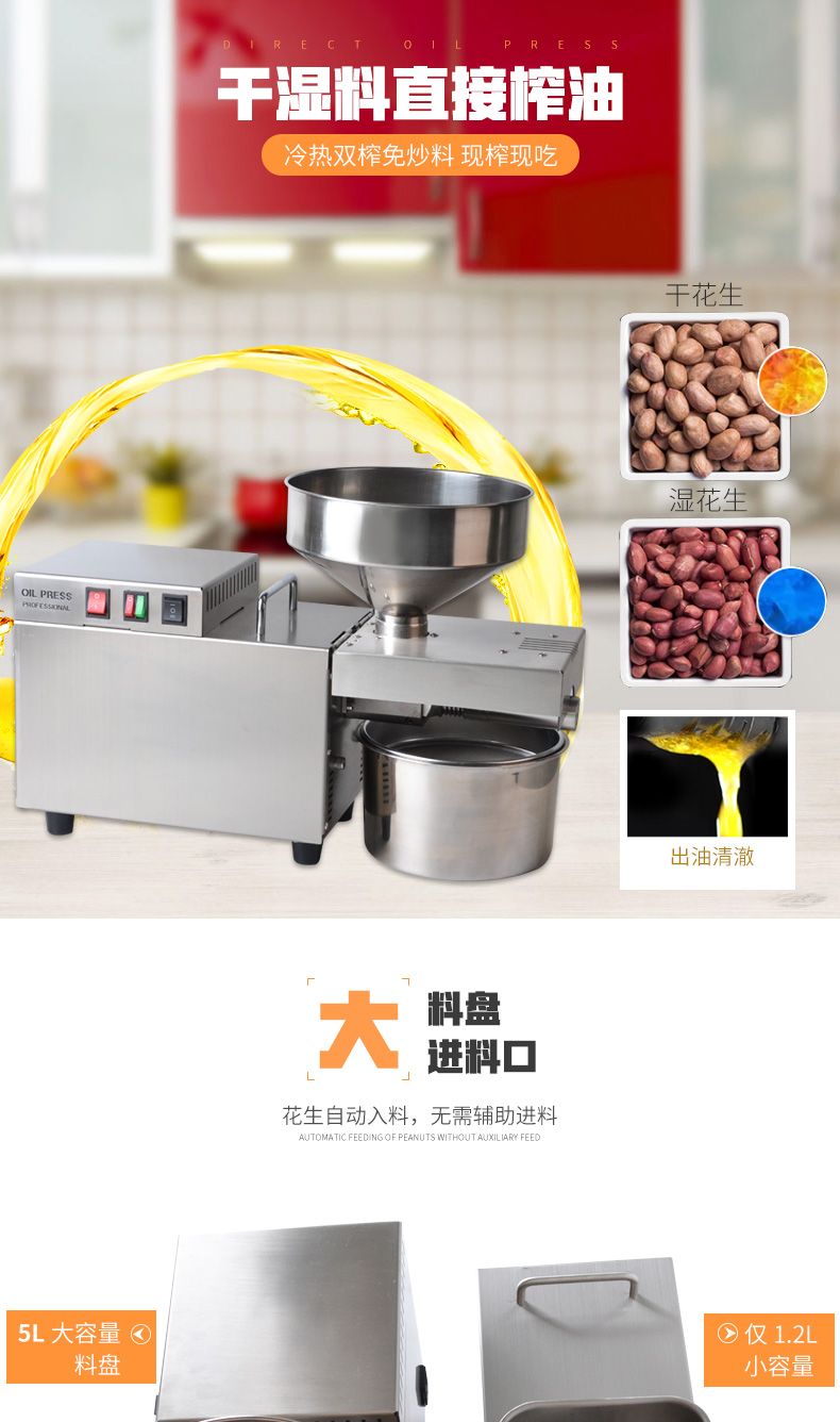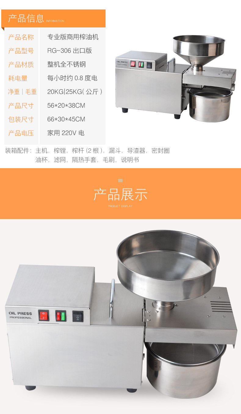 레인저 상업용 가정용 패스트 오일 프레스 전기 중소 스테인리스 자동 지능형 감기 및 핫 오일 프레스스토어 가기