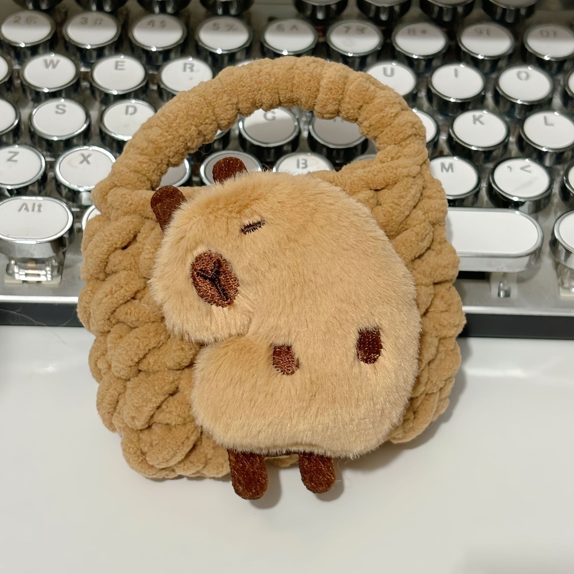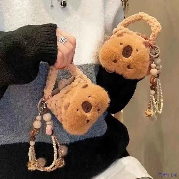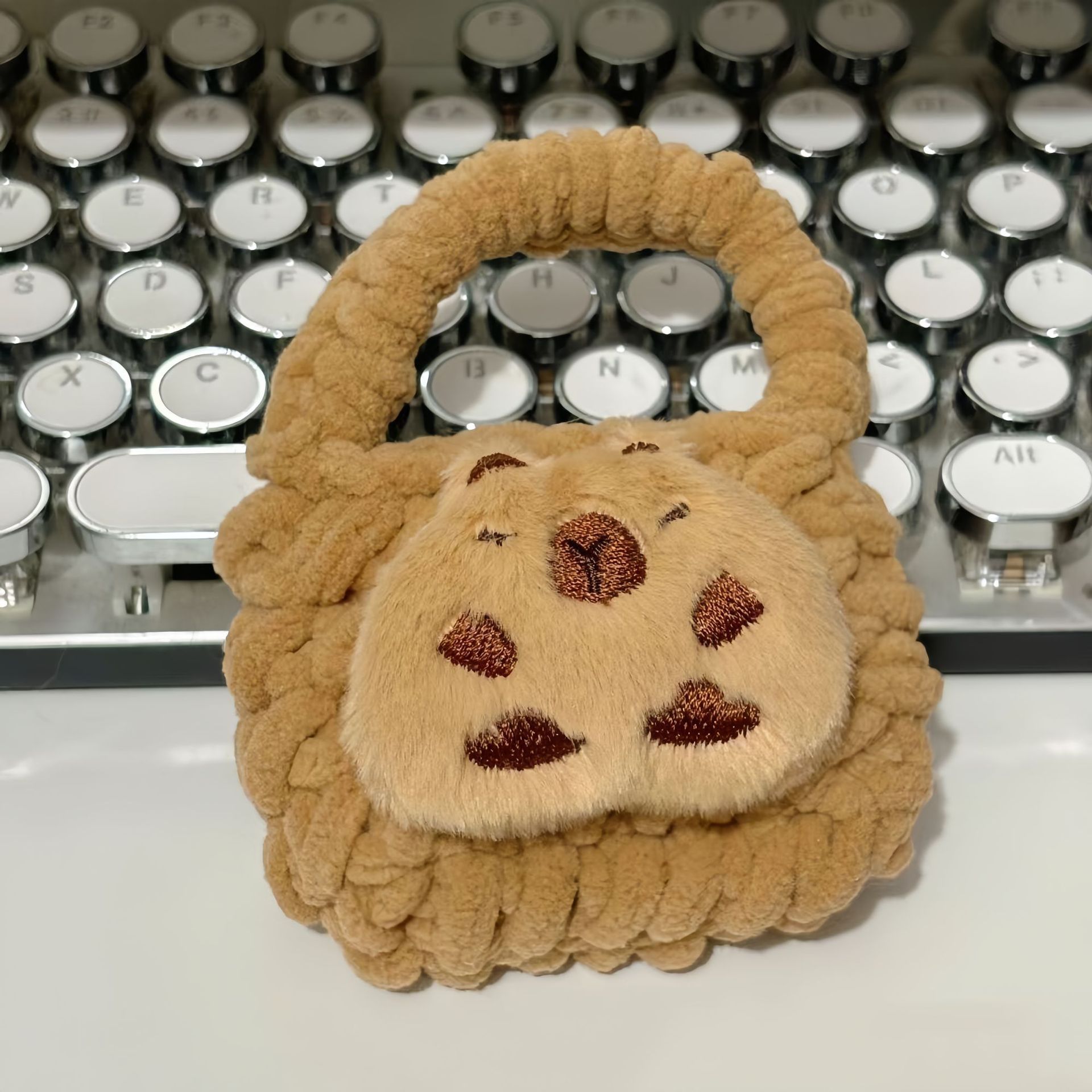 애플 카피 카피 바라 스토리지 헤드셋 보호 커버에 적합한 귀여운 봉제 가방 만화 다크 브라운스토어 가기